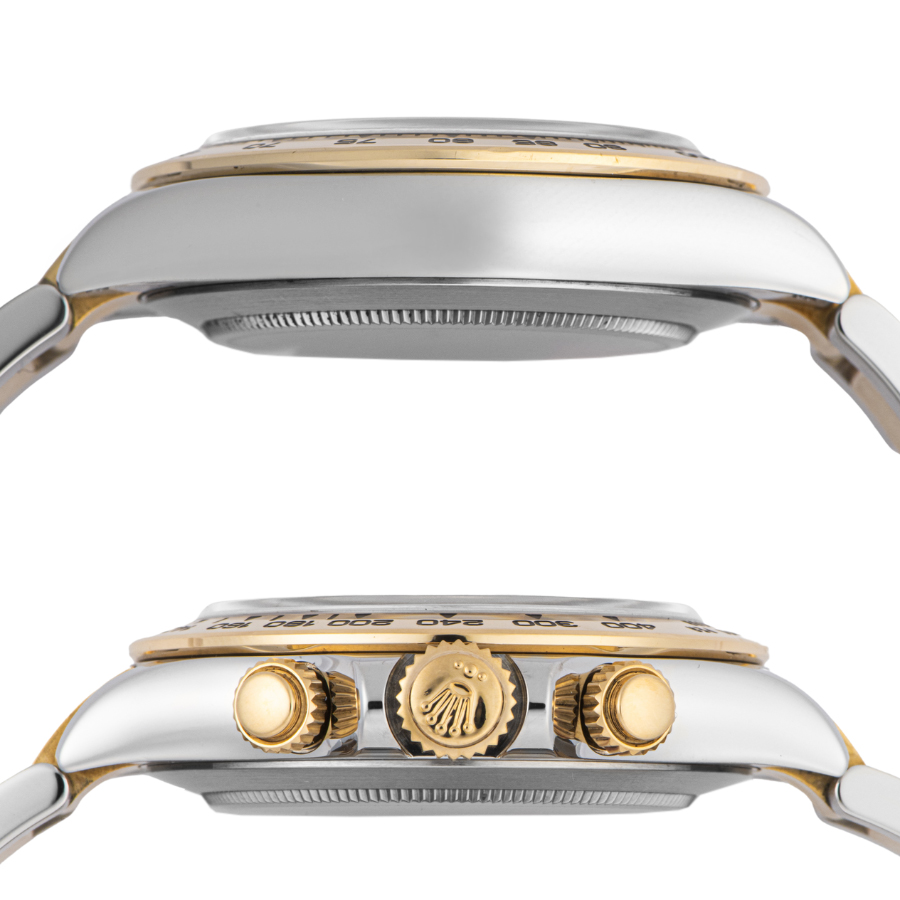 | 商品説明 | ☆2016年に新デザインのタキメーターベゼルを搭載して登場しました。 ベゼルやリューズ、プッシャー、ブレスレットに18Kイエローゴールドを採用し、メカニカルなデザイン性とブラックシェルの色合いにゴージャス感が出ていて人気のモデルです。 ※外装仕上げ済みですが、ケースサイド8時位置に薄っすらと打ち傷跡が残ります。 その他目立つキズはなく、大変綺麗な状態です。 |