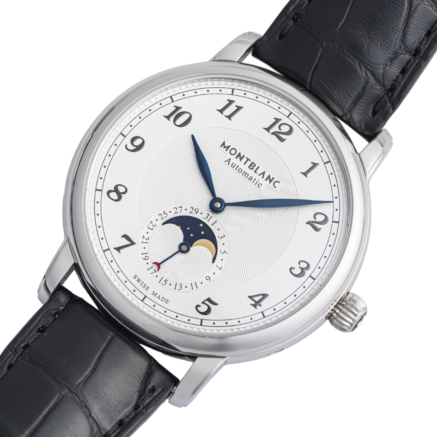 ☆実用性、技術力、美しさで時計愛好家から高く評価されて、6時位置の窓に表示されるムーンフェイズと日付の組み合わせが特徴的なモデルです。