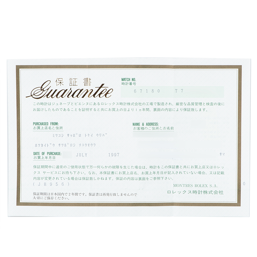ロレックス オイスターパーペチュアル 67180 T番