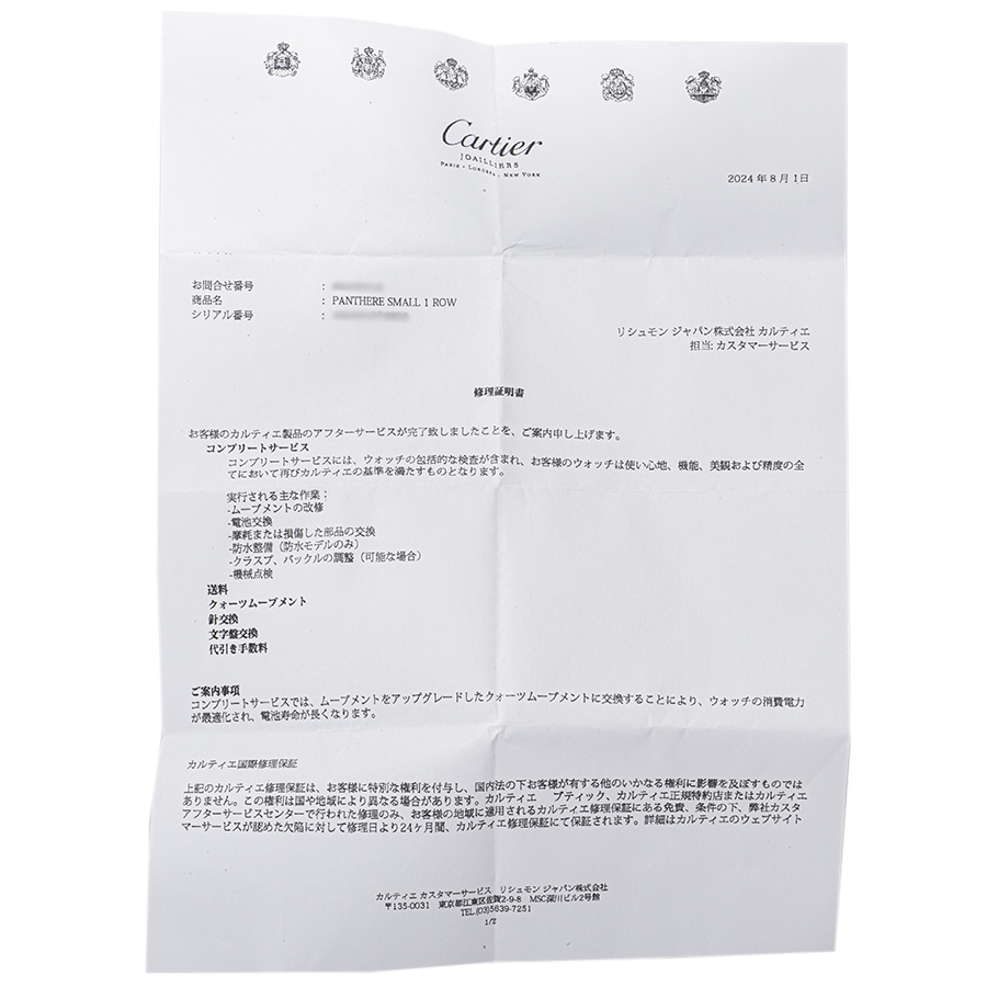 | 付属品 | 修理明細書(2024/8) |