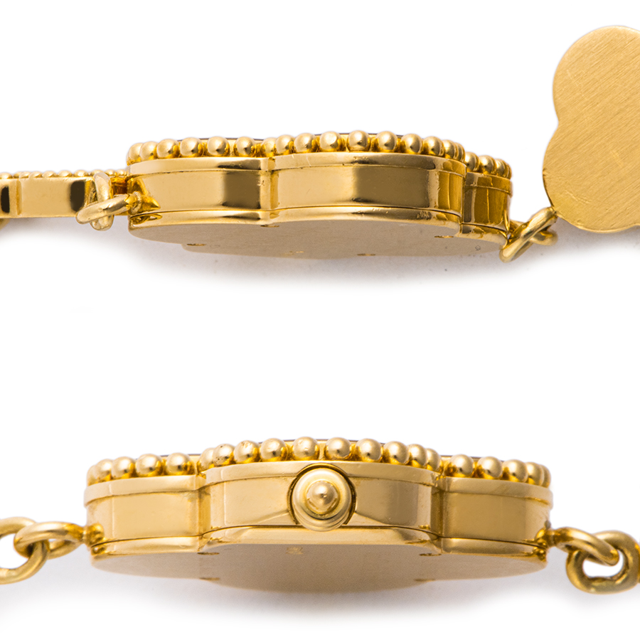 | 商品説明 | ☆ヴァンクリーフ&アーペルの代表作であるアルハンブラモチーフの時計で、ブレスレット感覚でお楽しみいただけます。 クローバーの4つの葉はそれぞれ、幸運、健康、富、そして真実の愛を象徴しています。 ※ケース本体に着用時目立たない程度の使用傷がありますが、目立つ大きな傷や致命的なダメージなどなく概ね綺麗な状態です。 裏面に使用に伴う小傷が見受けられます。 |