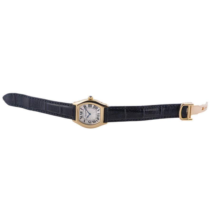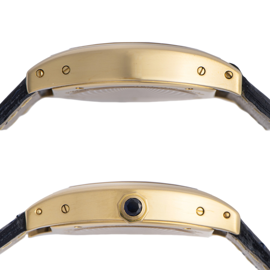 | 商品説明 | ☆1999年から2009年にかけて展開されたコレクション プリヴェ カルティエ パリ(CPCP)のシリーズモデルの一つで、トーチュはフランス語で「亀」という意味で、亀の甲羅がモチーフにされています。 シースルーバックの裏蓋から搭載される手巻ムーブメントcal.437がご覧いただけます。 ※ガラスに数か所傷があります。 その他目立つ大きな傷はなく概ね綺麗な状態です。 新品社外革ベルトに交換済みです。 |