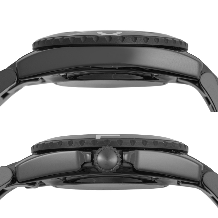 | 商品説明 | ☆マットブラックコーティングを施したステンレススティールとサファイアクリスタルのベゼルを組み合わせ、ホワイトカラーのCHANELロゴをあしらいました。数量限定の特別なタイムピースです。 ※材質がセラミックですので小傷もなく、大変綺麗な状態です。 |