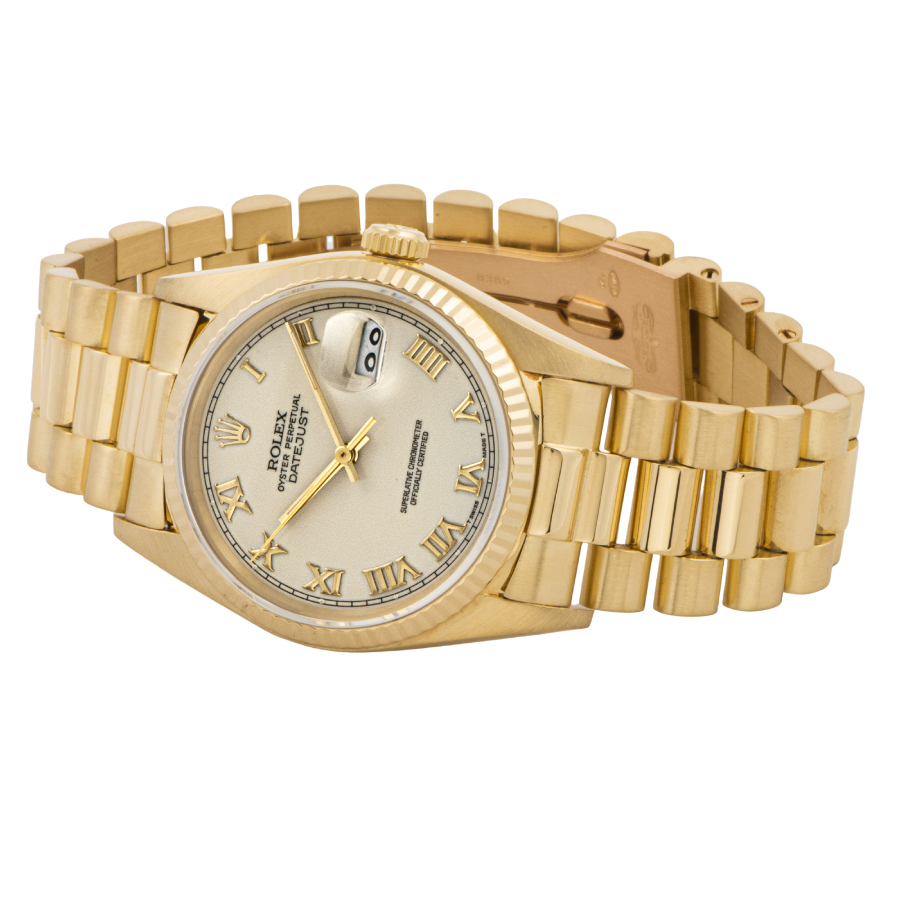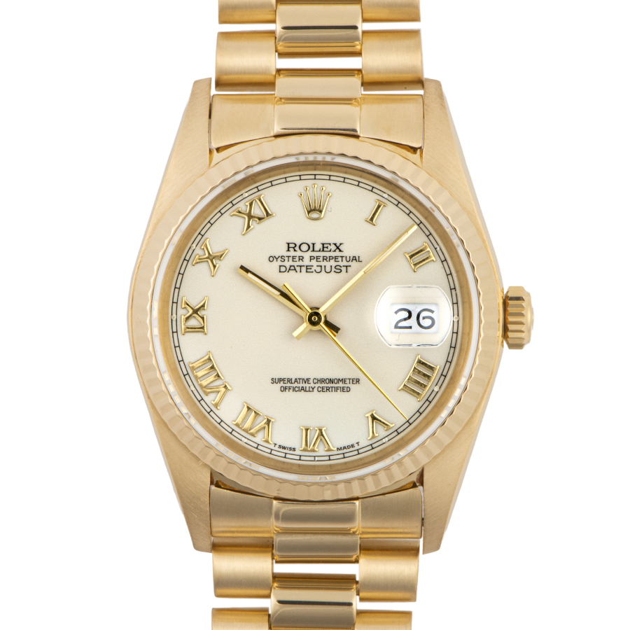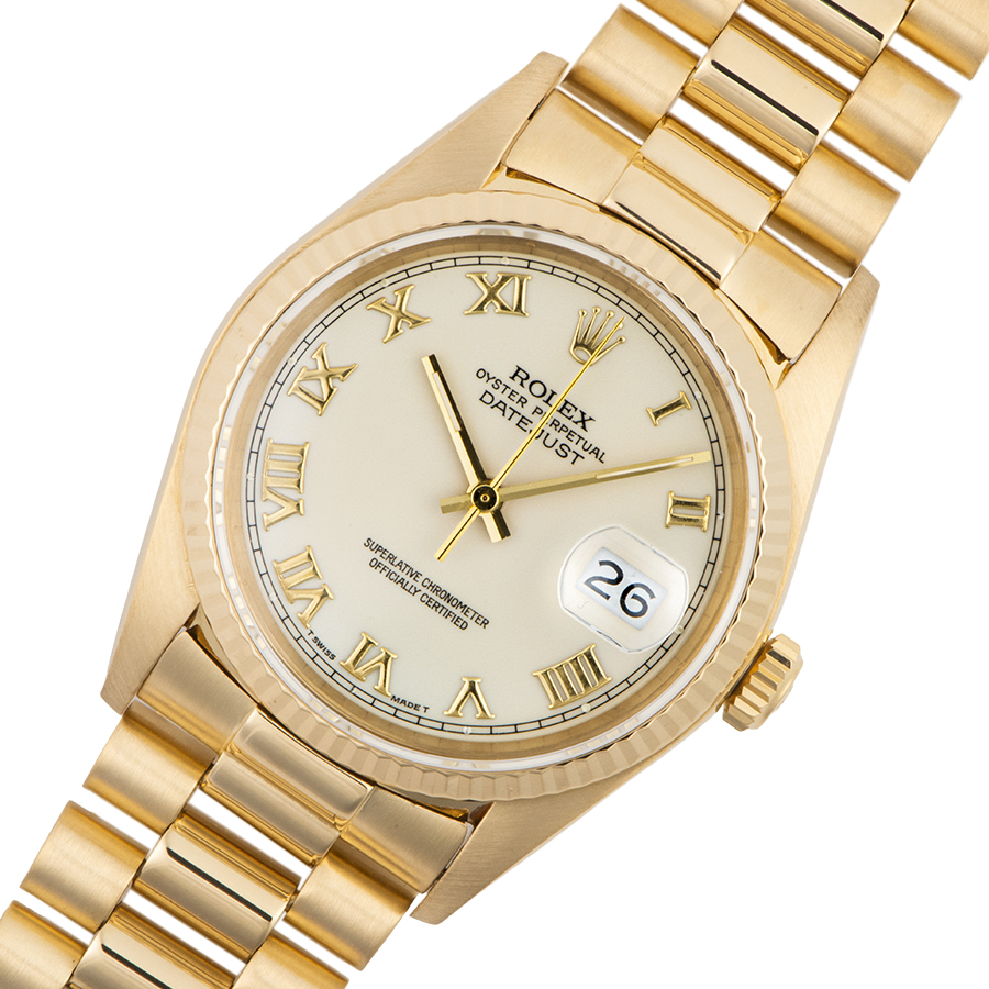 | 商品説明 | ☆アイボリーローマンダイアルの金無垢デイトジャストが入荷しました。 ※外装仕上げ済みで目立つ大きな傷などなく大変綺麗な状態です。 ブレスに若干の伸びがありますが、年代を考慮して頂ければコンディション大きな問題はございません。 |