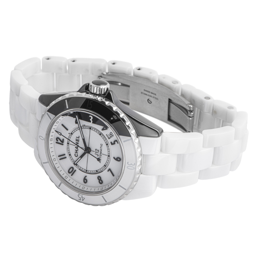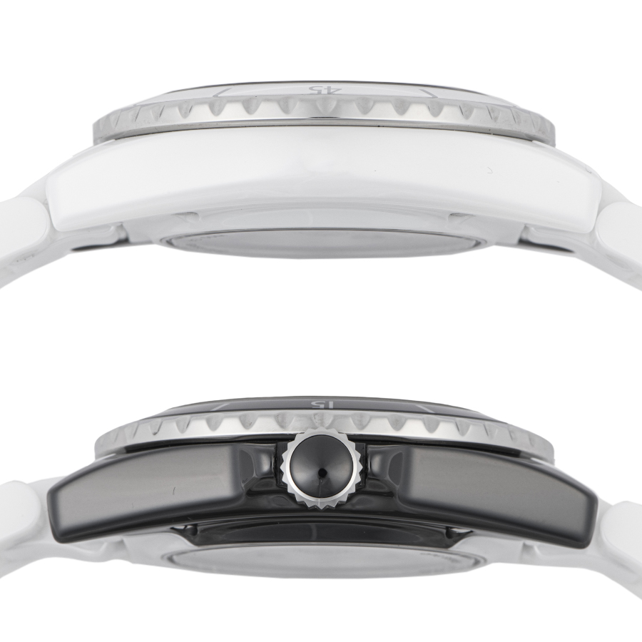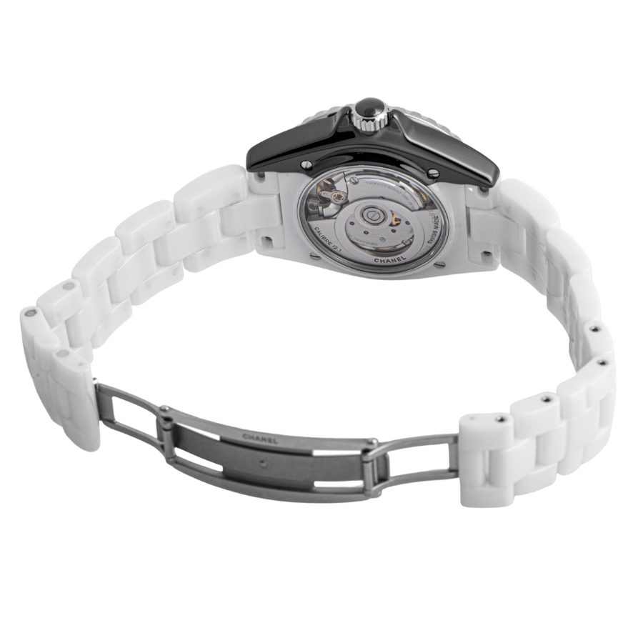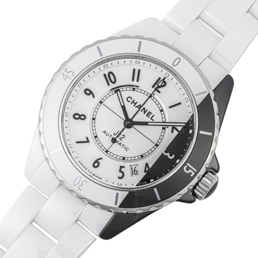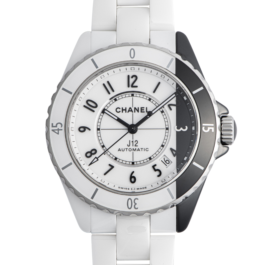 | 商品説明 | ☆初代J12が発表された2000年から20周年となる2020年のメモリアルイヤーに発表されたモデルで、シャネルを象徴する対極カラーのホワイトとブラックの2つのセラミックケースを非常に薄い特殊なブレードで切断した後に繋ぎ合わせるといった高度なテクニックによって作られ、一つのタイムピースに落としこんだ注目すべきクリエイションです。 ※材質がセラミックですので小傷もなく、大変綺麗な状態です。 |