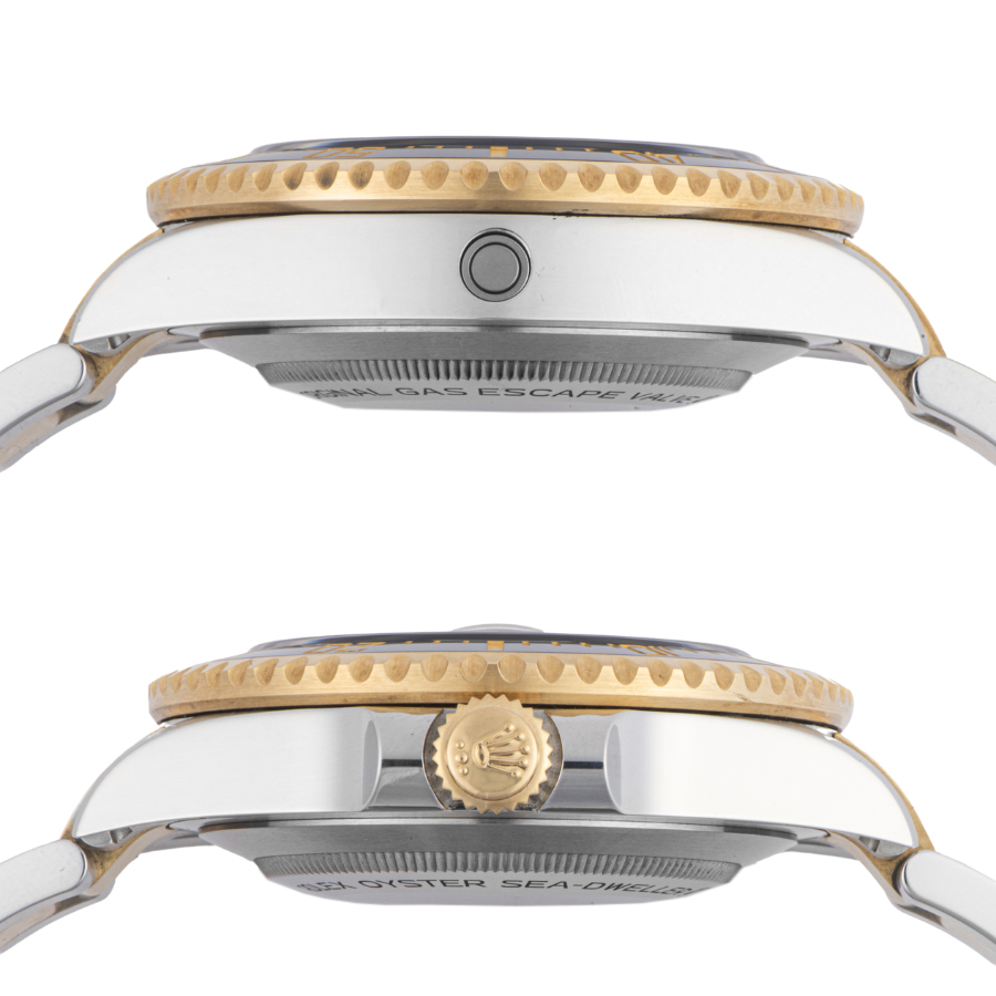 | 商品説明 | ☆シードゥエラーシリーズ初となるコンビモデルとして2019年に誕生。 文字盤の“SEA-DWELLER” が赤色で記されていましたが、126603ではコンビ仕様のゴールドカラーで記され、通称「金シード」とも呼ばれます。 |