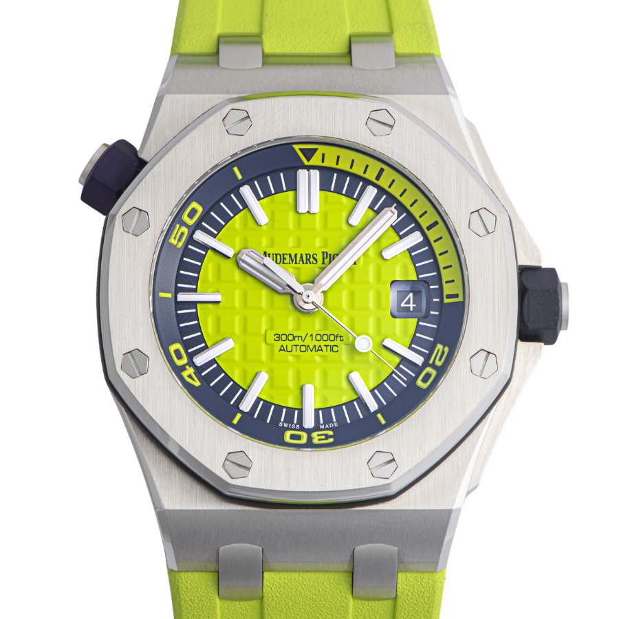 | 商品説明 | ☆ロイヤル オーク オフショア コレクションのベストセラーの 1 つであるロイヤル オーク オフショア ダイバー「ファンキー カラー」の、発泡性のライム グリーンの新バージョンです。オーデマ ピゲ ブティックのみでの限定販売となります。 |