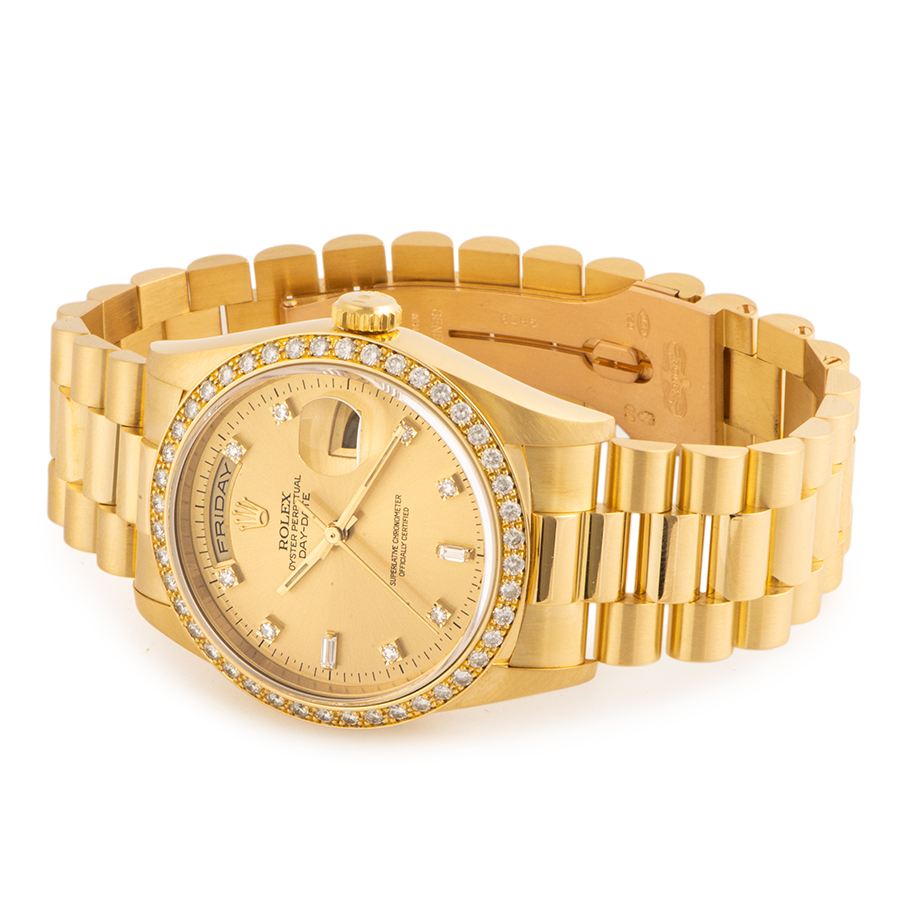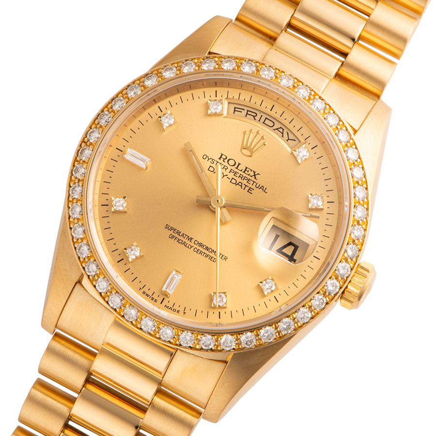 | 商品説明 | ☆K18YG無垢モデルでずっしりとした重量感のある、ロレックス最高峰のドレス系モデルです。 ベゼル部分にもダイヤモンドをあしらった豪華なモデルです。 ※外装仕上げ済みで目立つ大きな傷などなく大変綺麗な状態です。 |