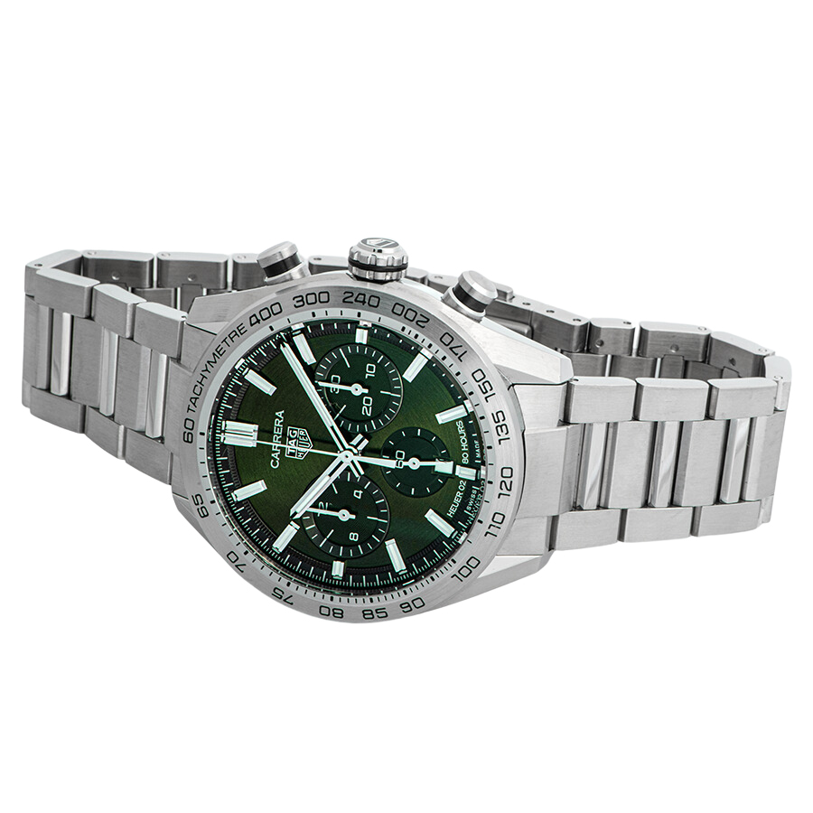 ☆ムーブメントには80時間ものロングパワーリザーブを誇る、垂直クラッチ式クロノグラフムーブメントの「ホイヤー02」を搭載し、スポーティーでありながらもエレガントさも感じさせる落ち着いた色合いのグリーンダイアルですので、ON・OFF問わずお使い頂けるかと思います。