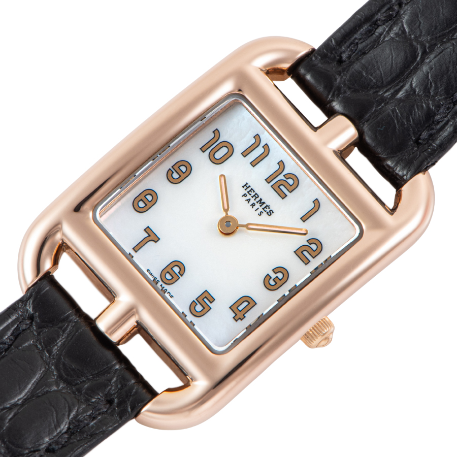 | 商品説明 | ☆エルメスのアイコニックな「ケープコッド」シリーズの中でも、K18PGケースにホワイトシェル文字盤を組み合わせた希少なモデル、「CC1.270」。 繊細に表面加工されたシェル文字盤が光を受けて柔らかく表情を変え、素材本来の上質な輝きがフェミニンで洗練された印象を与えます。 |