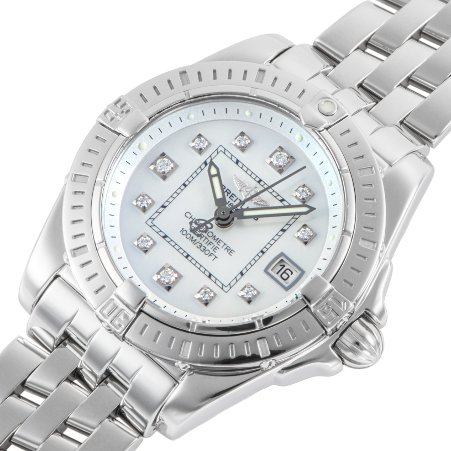 | 商品説明 | ☆ブライトリング A71356は、32mmケースにホワイトマザーオブパールの文字盤とダイヤモンドインデックスを備えた華やかなレディースモデル。 小ぶりながらも100m防水やサファイアクリスタル風防を備え、日常からフォーマルまで幅広く活躍します。 上品さとタフさを併せ持つ、ブライトリングらしい一本です。 |