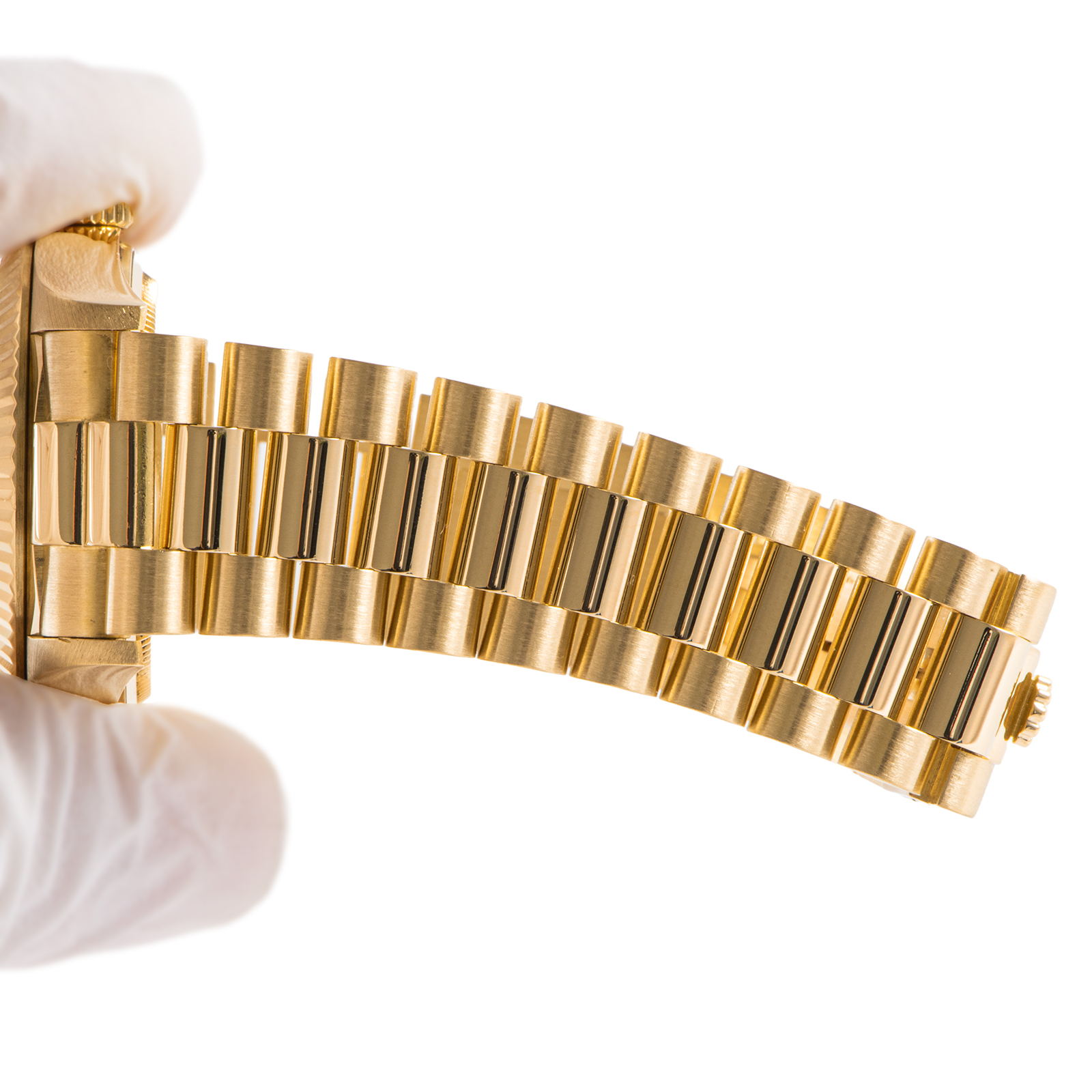 インデックスに配された10粒のダイヤモンド(8Pラウンド&2Pバゲット)が、手元をより一層華やかに演出。単なる時計を超え、一生モノの資産としても価値あるタイムピースです。