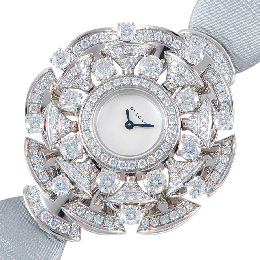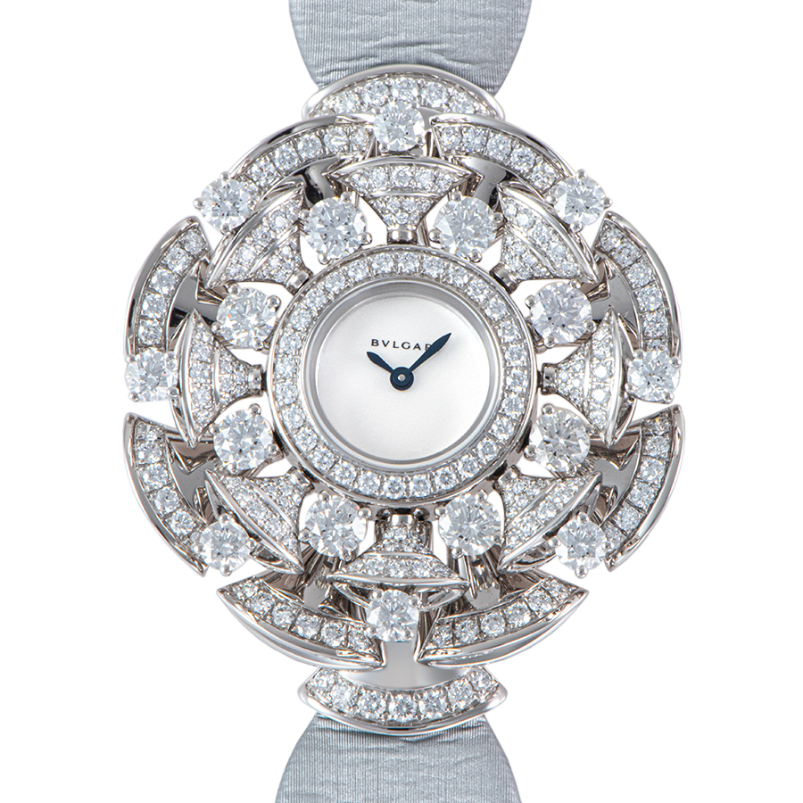 | 商品説明 | ☆ブルガリの「ディーヴァ ドリーム」コレクション Ref. 102254は、ローマのカラカラ浴場の扇形モザイクとグラマラスなディーヴァたちに着想を得たアイコニックなタイムピースです。 直径39mmの18Kホワイトゴールド製ケースには、総計約5.61カラットにも及ぶ230ピースのブリリアントカット・ダイヤモンドが贅沢にパヴェセッティングされ、神秘的なマザーオブパールダイヤルと融合しています。 ブルガリの卓越したジュエリーメイキングと時計製造技術が見事に融合したこの時計は、コレクション象徴の扇形モチーフを随所に施し、上質なグレーサテンストラップと相まって、現代を生きる自立した女性の内面から溢れる輝きとイタリアンビューティーのエッセンスを体現した逸品です。 |