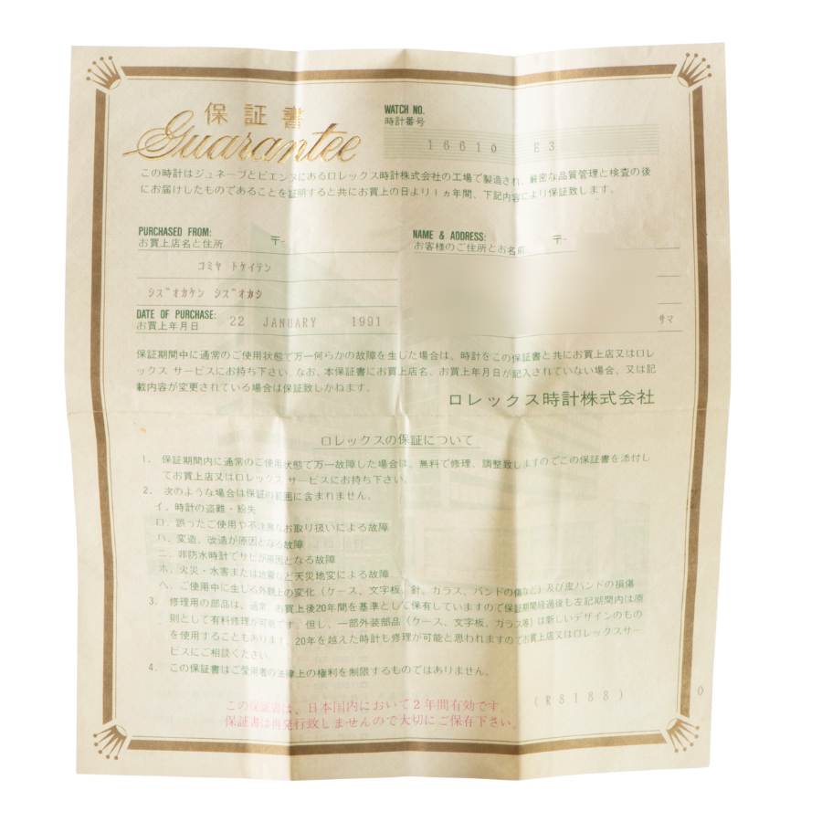 | 付属品 | 箱・正規保証書(1991/1)OH永久半額特典付き |