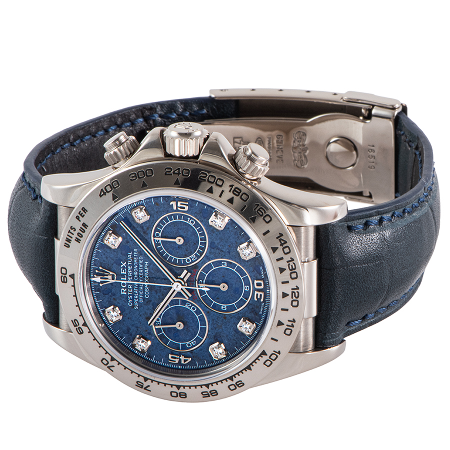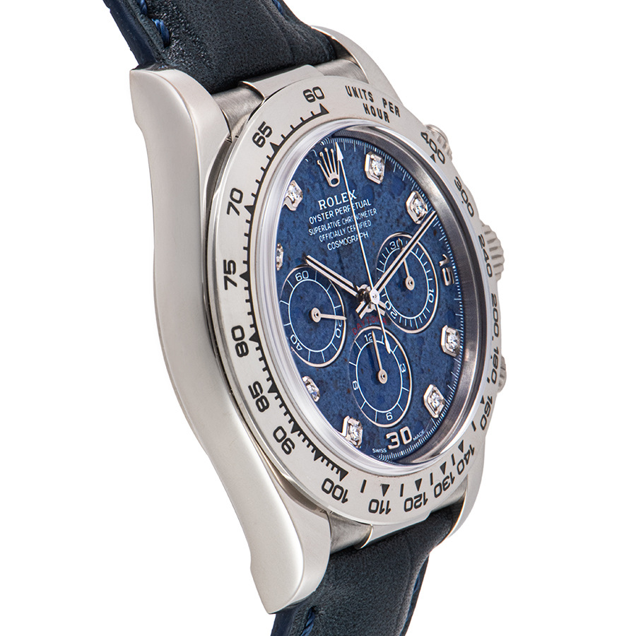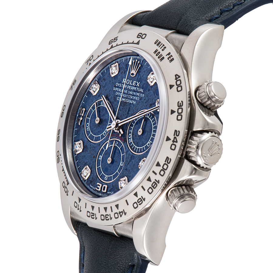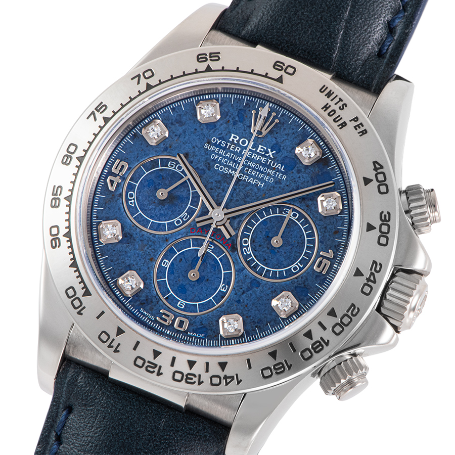 | 商品説明 | ☆ロレックス デイトナ Ref.16519より、息をのむほど美しい稀少モデルが入荷しました。 文字盤には、天然石であるソーダライトを贅沢に使用。 深く神秘的なブルーは、まるで夜空を切り取ったかのようで、石目模様が一本一本異なる特別感を演出します。 ケース素材にはK18ホワイトゴールドを採用。派手さを抑えた上品な輝きが、天然石の文字盤と完璧な調和を見せています。 搭載されるムーブメントは、多くのファンを魅了してやまない「エル・プリメロ」。 現行モデルにはない、この時代のデイトナだからこそ実現した特別なオーラを放つタイムピース。 ※本個体は社外製の型押しレザーストラップが装着されており、ソーダライトをより上品に引き立てる組み合わせとなっております。 |