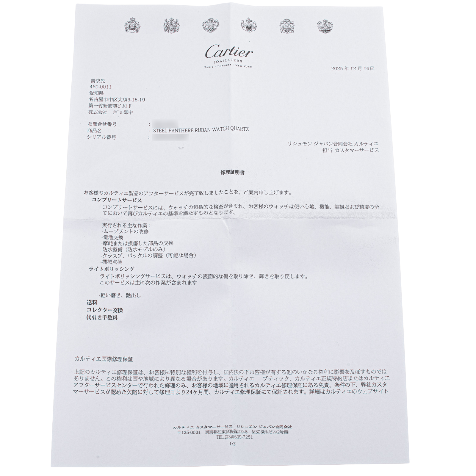 | 付属品 | 修理明細書(2025/12) |