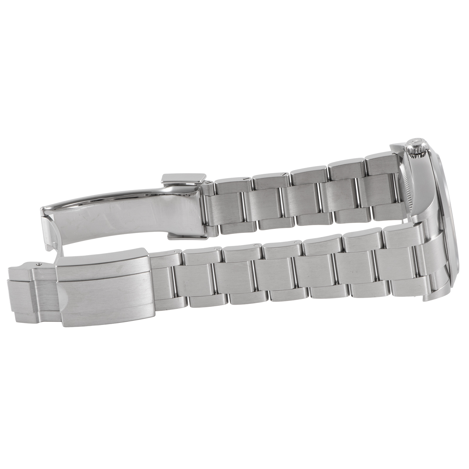 | コンディション | ガラス:欠けやキズはありません 文字盤、針:大変綺麗な状態 ベゼル:鏡面部分に拭き傷程度は見受けられますが、目立つ大きな傷はなく大変綺麗な状態 ケース:1時位置サイドに薄っすらと打ち傷の跡が見受けられますが、その他目立つ大きな傷はなく大変綺麗な状態 ブレスレット:バックルに使用に伴う僅かな小傷が見受けられますが、全体的に傷は少なく大変綺麗な状態 |