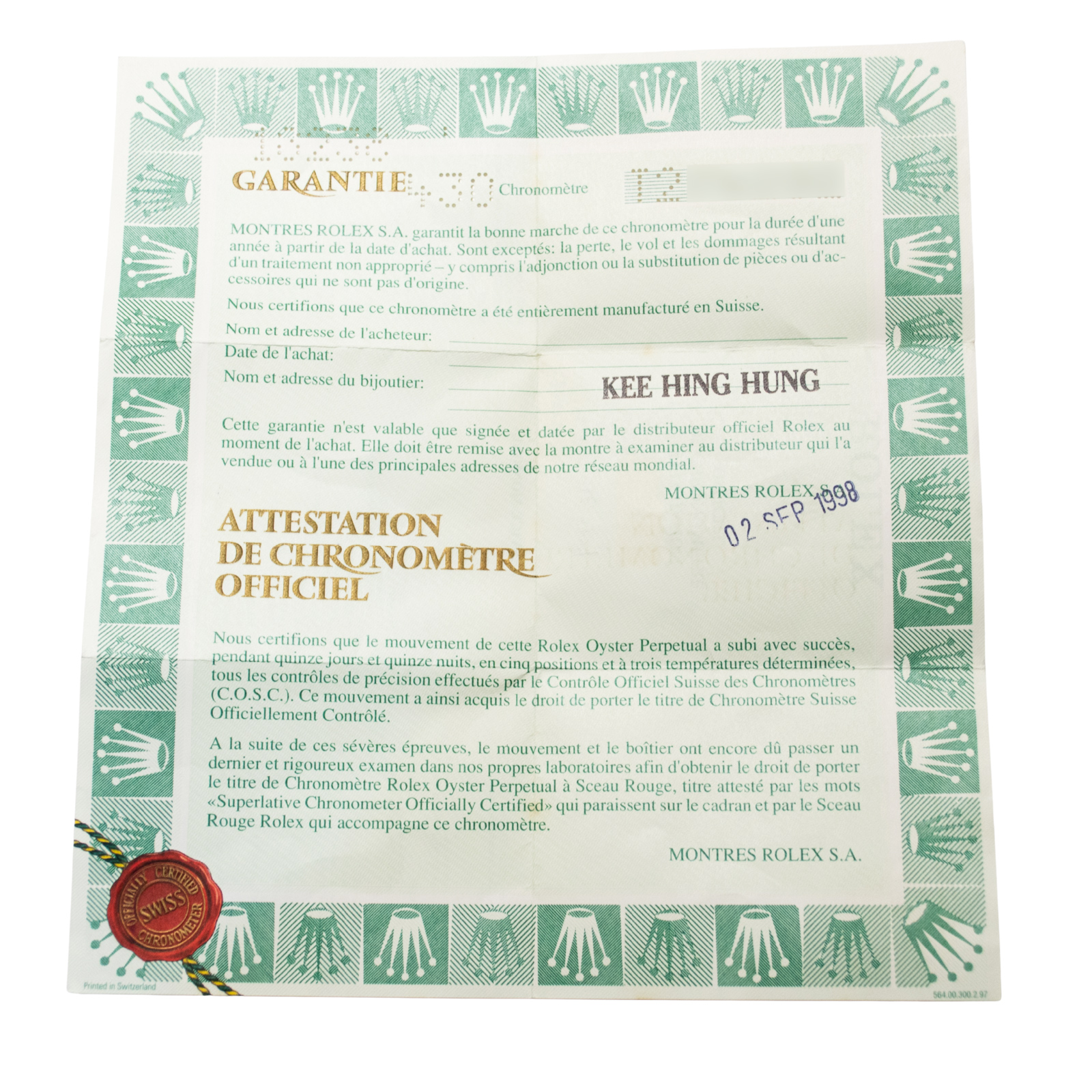 | 付属品 | 箱・保証書(1998/9) |
