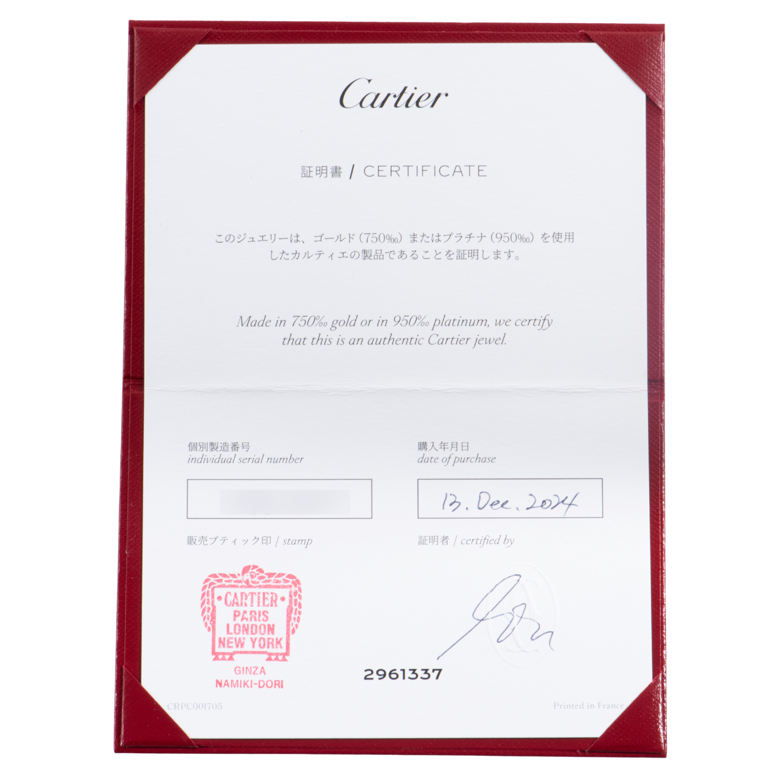 | 付属品 | 証明書(2024/12国内) |