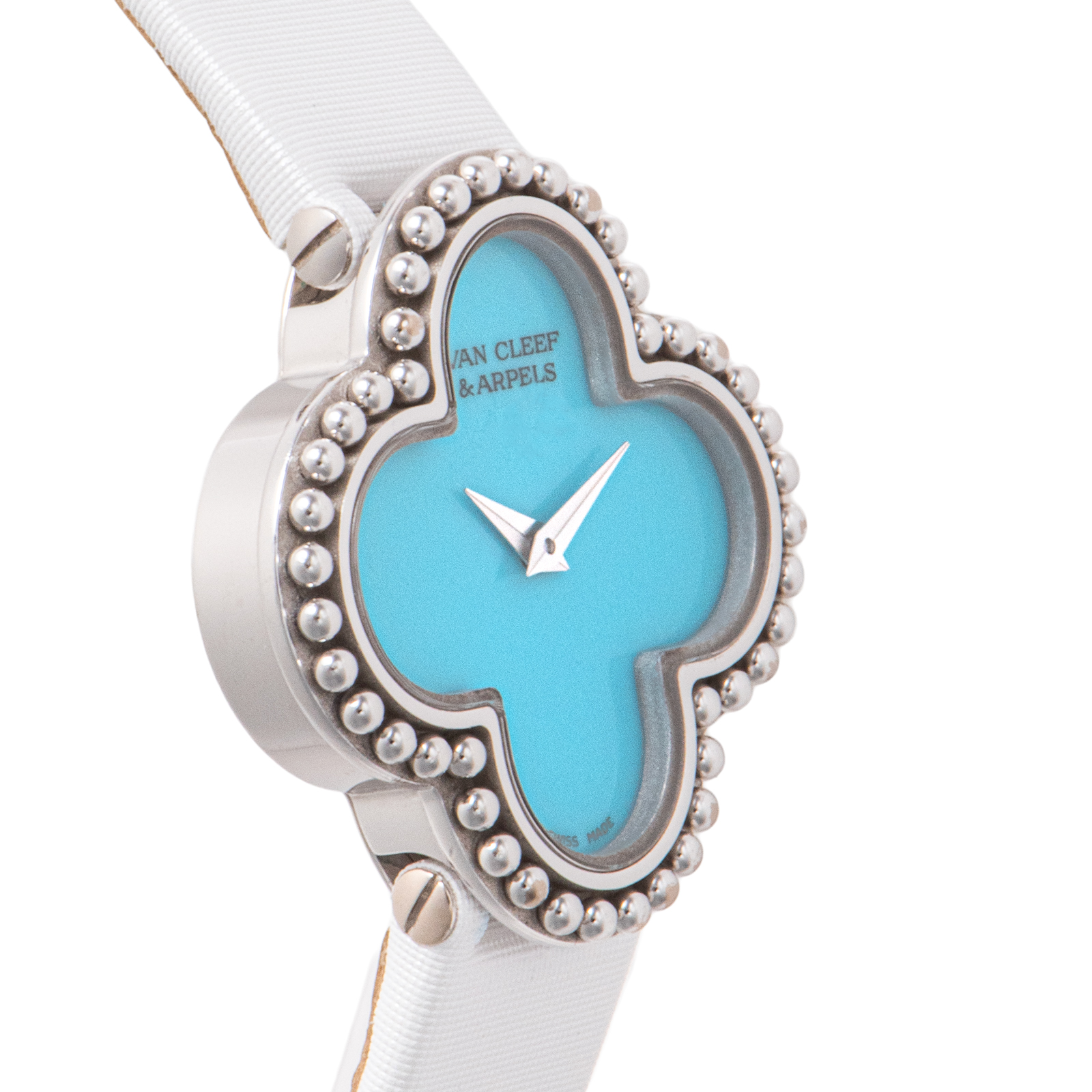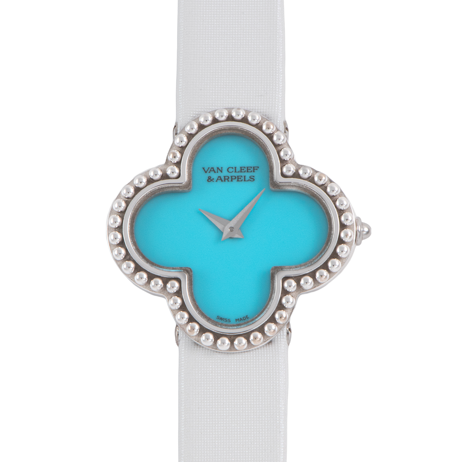 | 商品説明 | ☆四つ葉のクローバーを象った「幸せの象徴」アルハンブラ モチーフに、鮮烈なターコイズブルーの天然石ダイヤルを合わせた、極めて希少でエレガントな一本です。 18Kホワイトゴールドの繊細なビーズ細工が、一点ごとに異なる表情を持つターコイズの魅力を最大限に引き立てます。 |