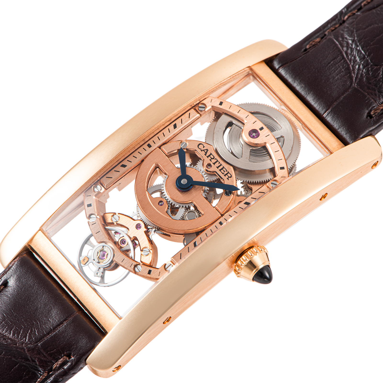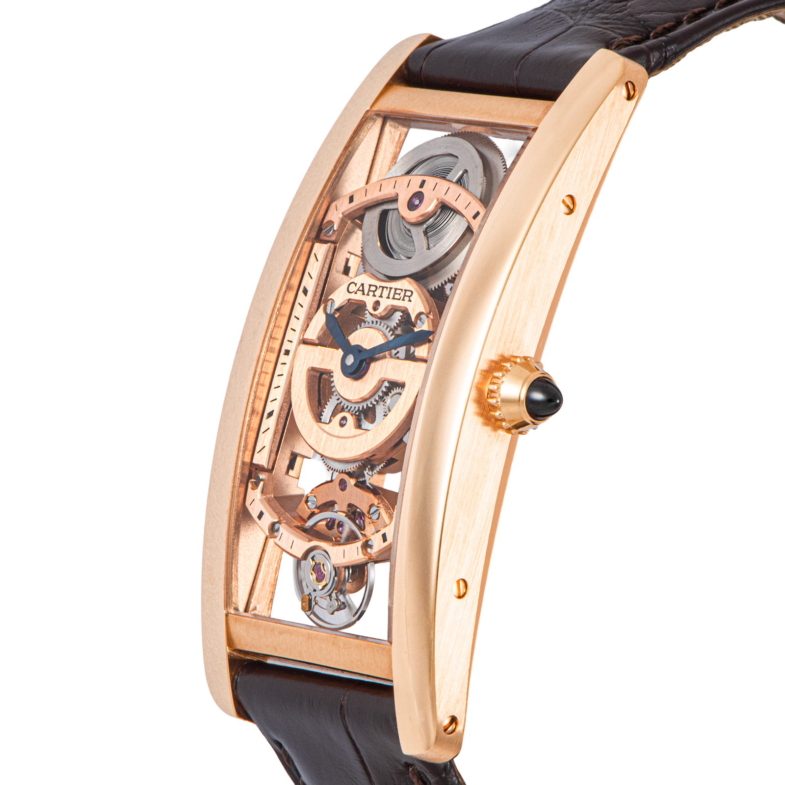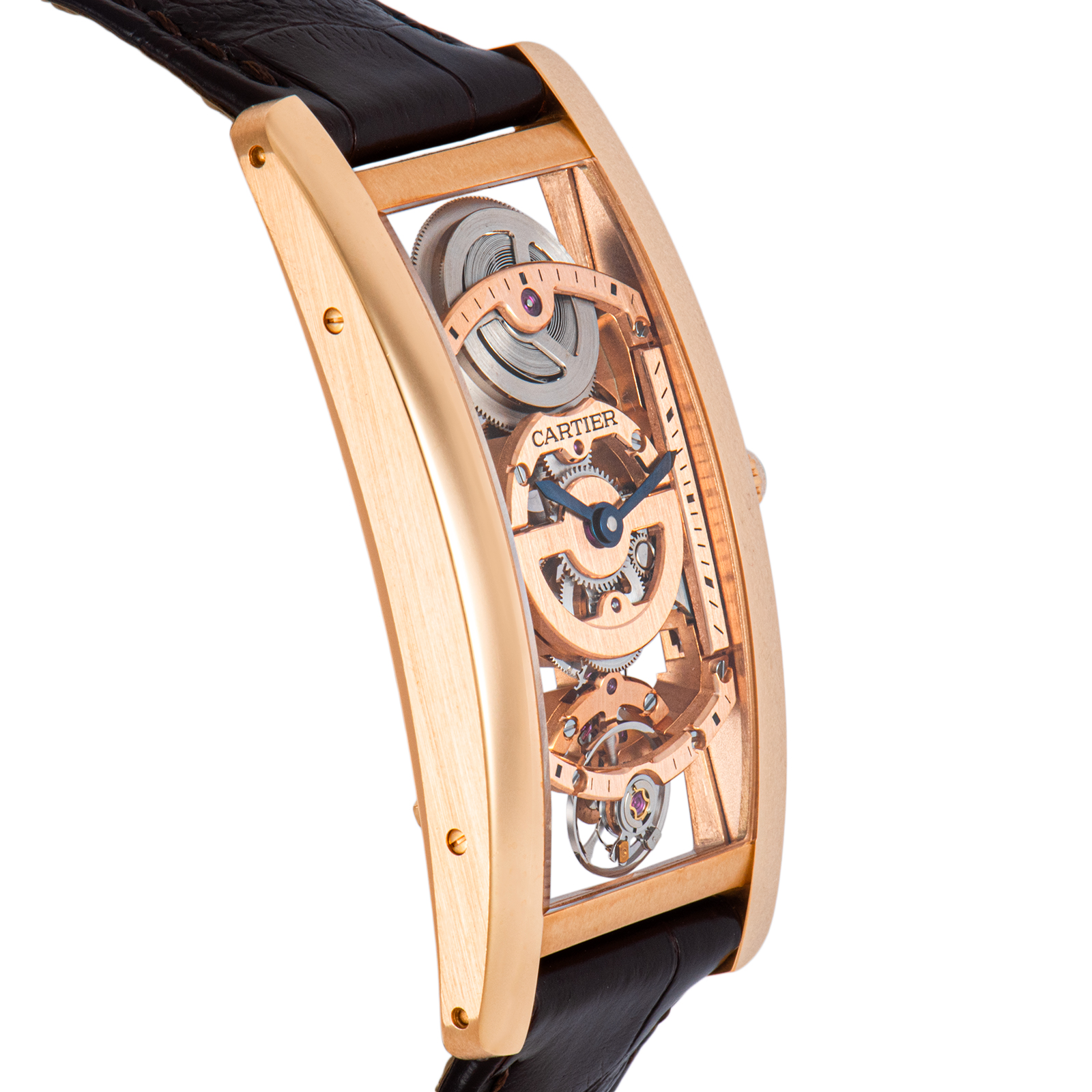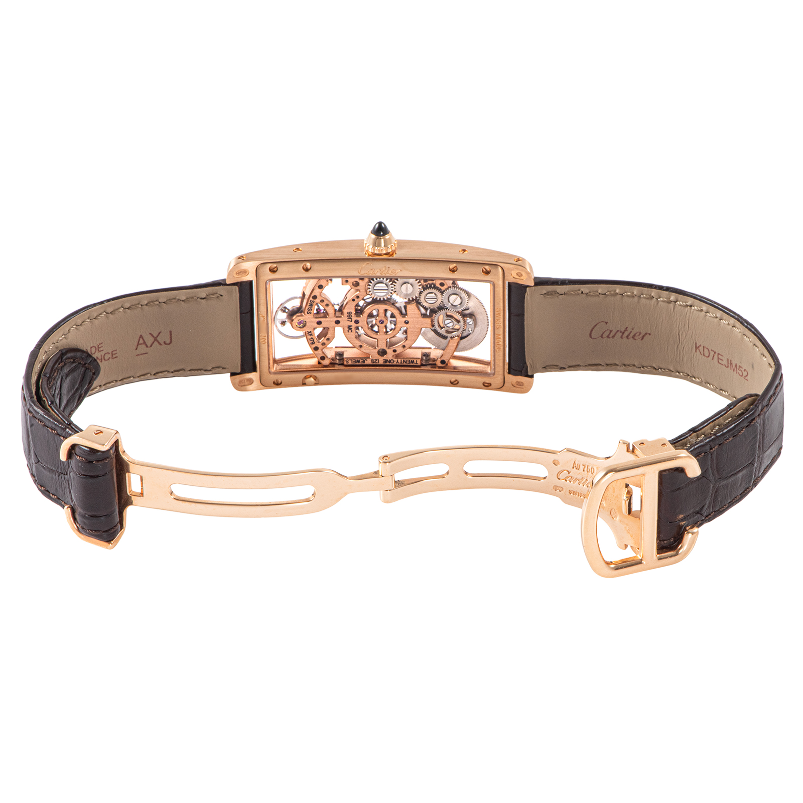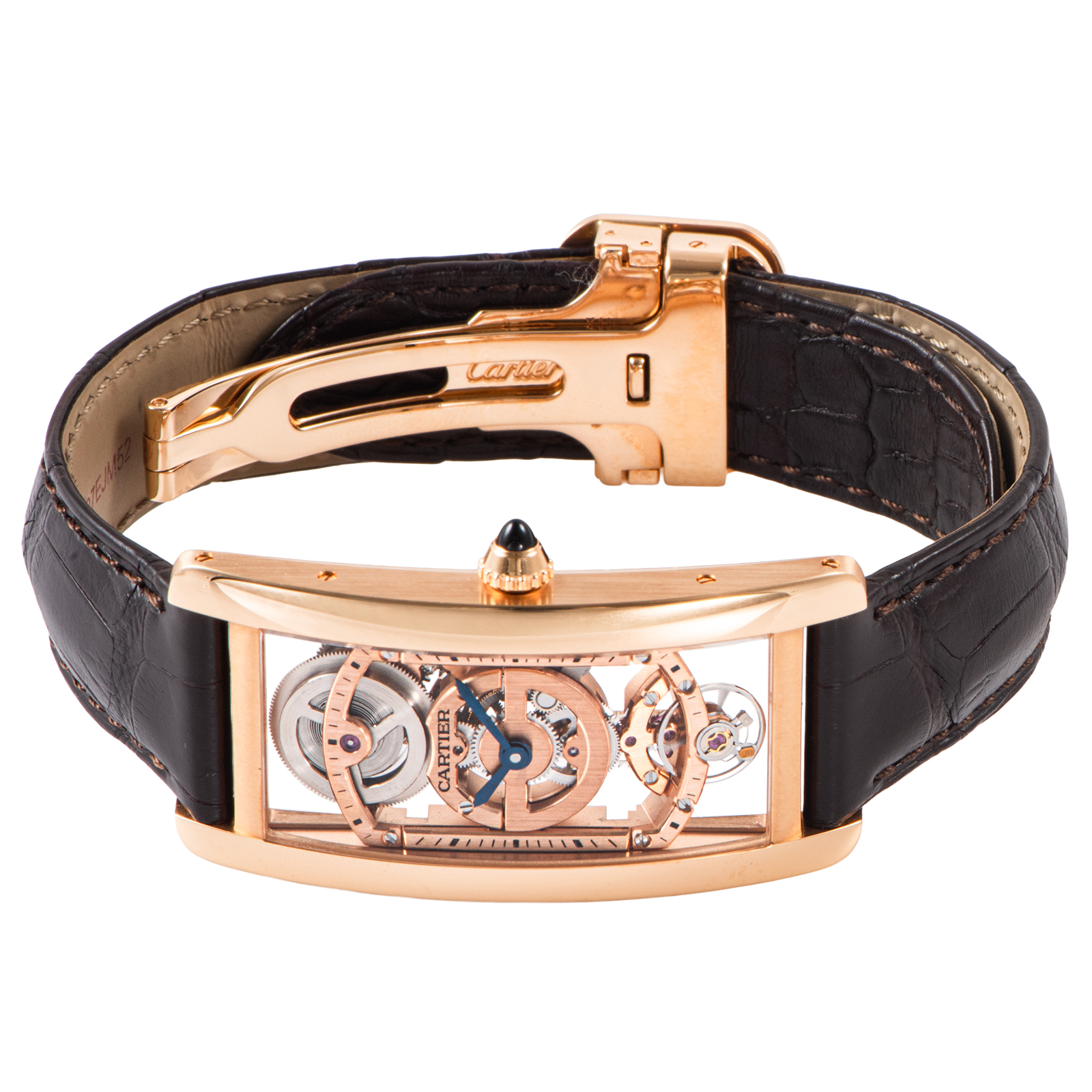| 商品説明 | ☆WHTA0008は、1917年にルイ・カルティエによって生み出された不朽の名作「タンク」の100周年を記念し、2017年に発表された世界100本限定の希少モデルです。 中でも、1921年発表の「タンク サントレ」は、その名の通りフランス語で「湾曲した」ケースが特徴で、手首の形に沿うように設計されたスリムでエレガントなシルエットが魅力です。 このモデルは、ケースの曲線に合わせて地板(ムーブメントの土台)まで湾曲させた特別な手巻きスケルトンムーブメント、キャリバー9917 MCを搭載しており、シースルーの文字盤からその精緻な機械美を堪能できます。 |