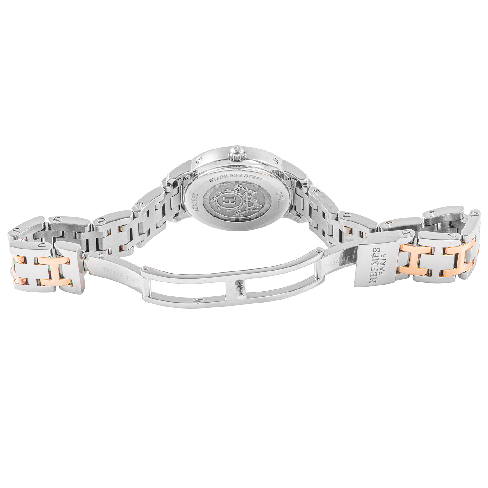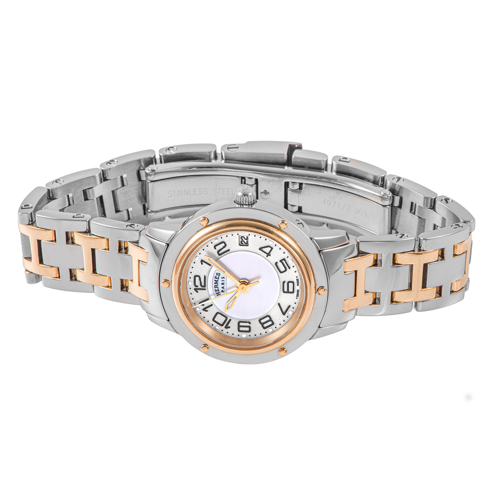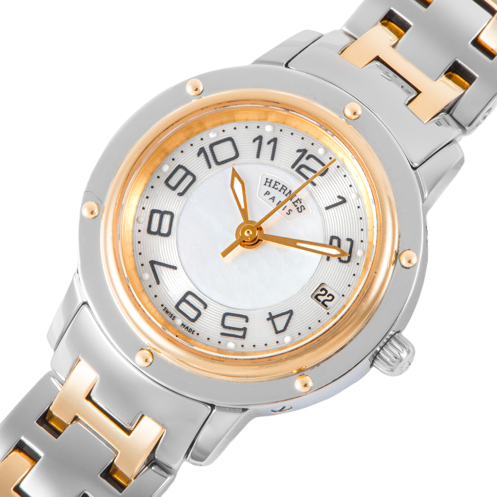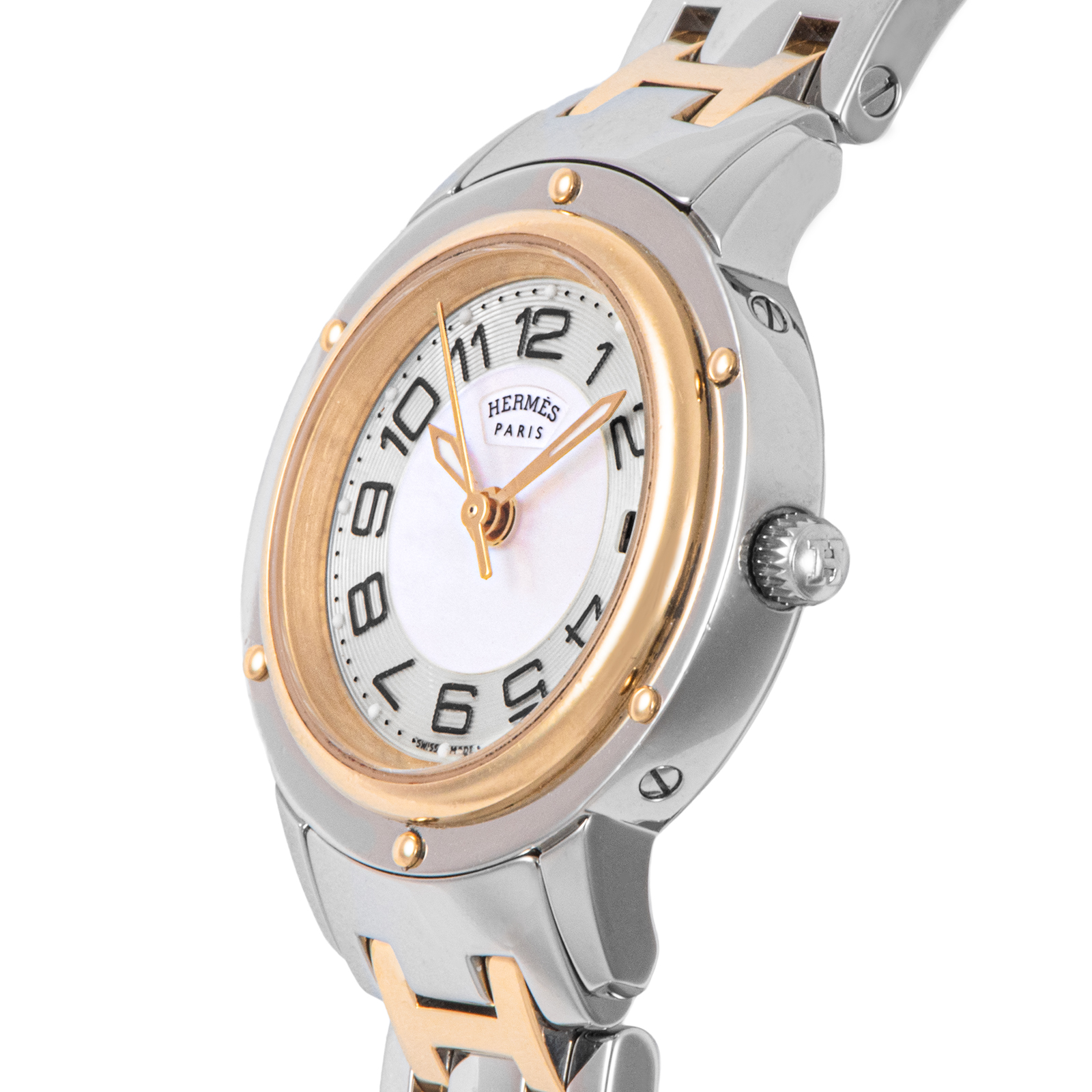 | 商品説明 | ☆19世紀の快速帆船の窓をモチーフにした、エルメスを代表する名品「クリッパー」。 CP1.220は、光の角度で虹色に表情を変えるホワイトシェルを贅沢にあしらったモデルです。 |