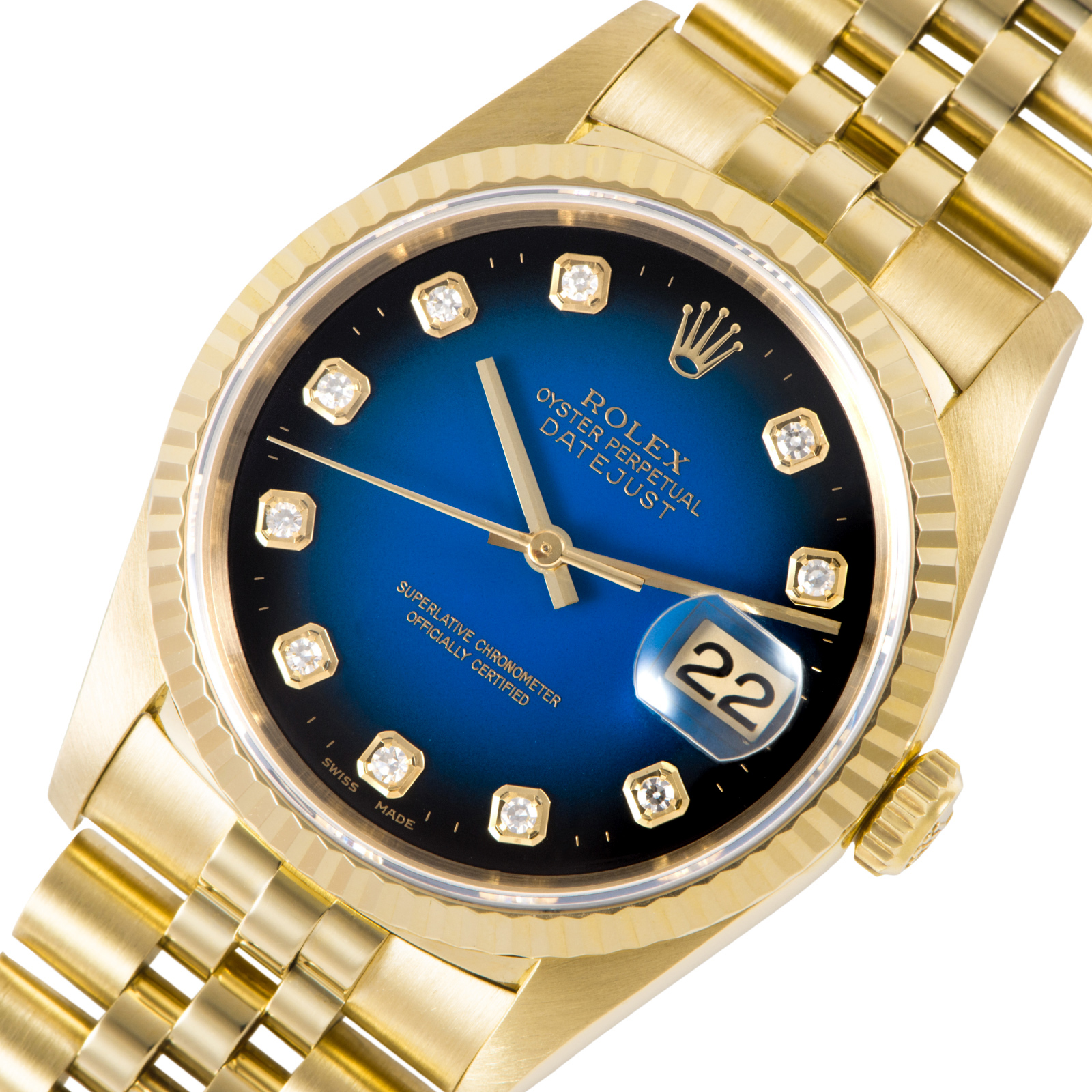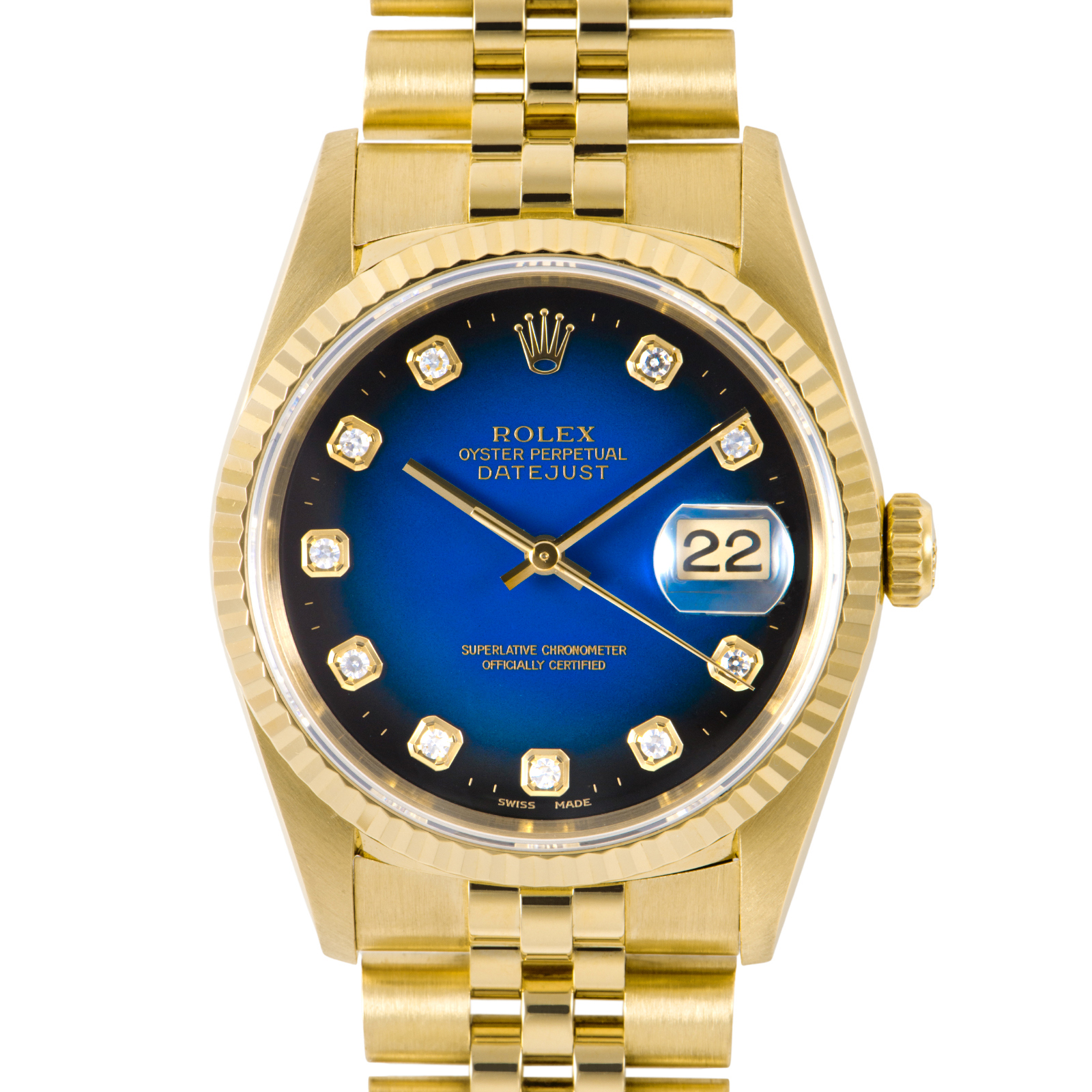 | 商品説明 | ☆K18YG無垢ケースに10Pのダイヤがついた豪華なデイトジャストが入荷致しました。 ブルーグラデーションダイアルがとても綺麗なモデルです。 研磨による痩せが少ない好個体で、エッジの効いたフォルムがその輝きを一層引き立てます。 |