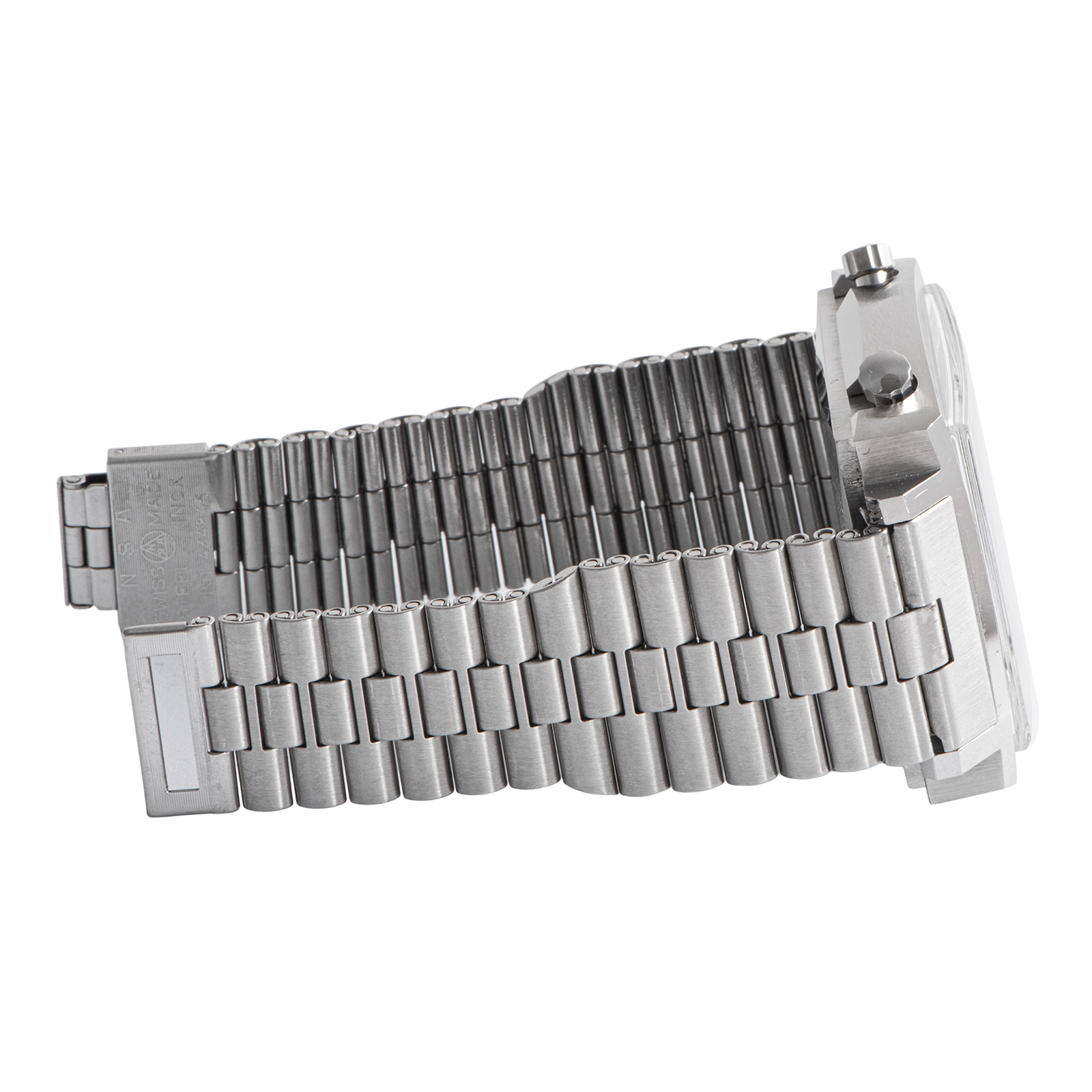 | コンディション | プラ風防:微細な傷はあるが、視認性は十分保たれています 文字盤・針:針にクスミや夜光色むらがあり、文字盤のインデクスの夜光の剥がれが見受けられますが、年代を考慮すればコンディションに大きな問題はございません ベゼル:ポツポツと打ち傷の跡が見受けられますが、年代を考慮すればコンディションに大きな問題はございません ケース:サイドに打ち傷・裏蓋に擦り傷等、年代相応の使用感は見受けられますが、コンディションに大きな問題はございません ブレスレット:年代相応の使用感は見受けられますが、致命的なダメージはありません |