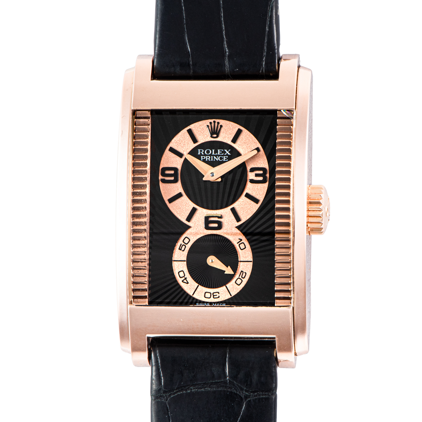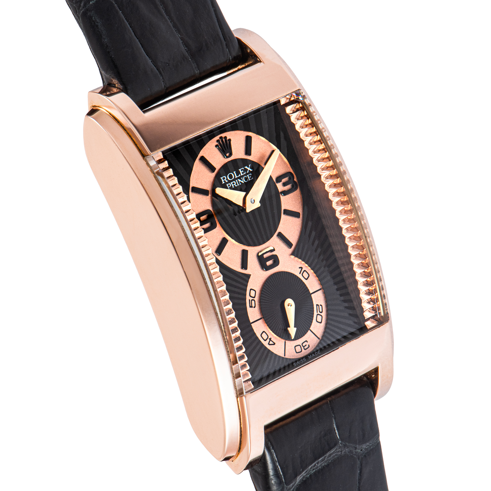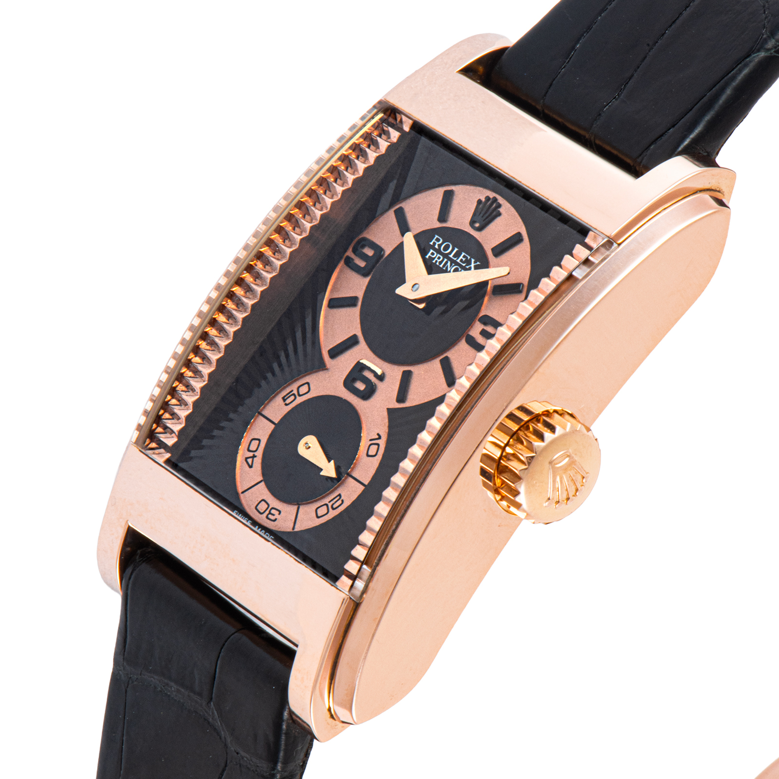 | 商品説明 | ☆チェリーニ プリンス Ref.5442/5は、ブランドの中でも異彩を放つドレスウォッチです。 丸型が主流のロレックスにおいて珍しい角形ケースを採用し、クラシカルでありながらモダンな存在感を放ちます。 18Kエバーローズゴールドのケースは温かみのある輝きを湛え、ブラックのギョーシェダイヤルとのコントラストが上品で洗練された印象を演出。 手巻きムーブメントを搭載し、ケースバックからはその美しい機構を鑑賞できます。 |