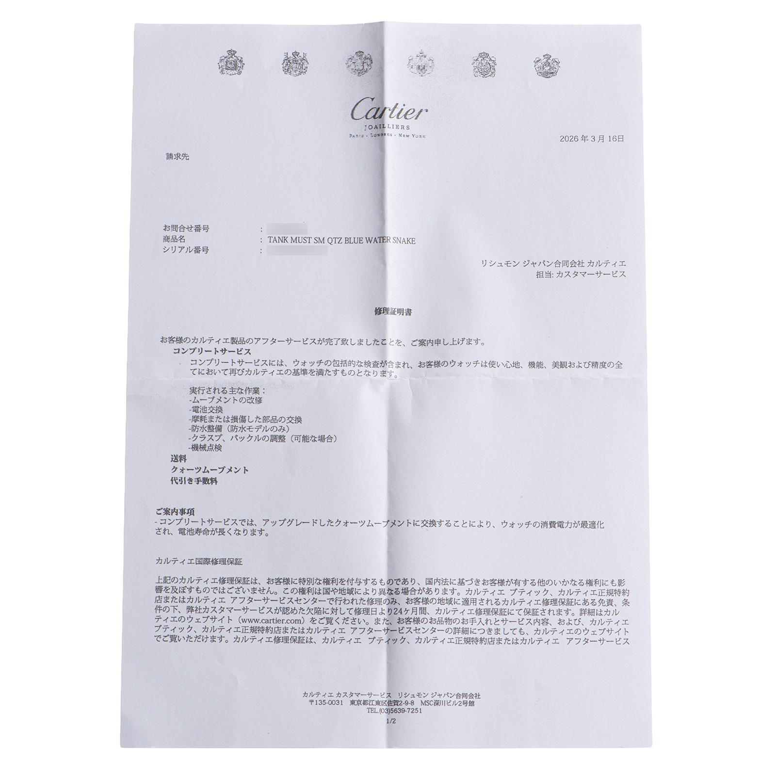 | 商品説明 | ☆カルティエの伝統的な「ヴェルメイユ」ケースが美しい、マストタンク アクアリーノです。 2026年3月にメーカーにてコンプリートサービスを完了したばかりで、万全のコンディションです。 ※2026年3月にメーカーにてコンプリートサービス済み |