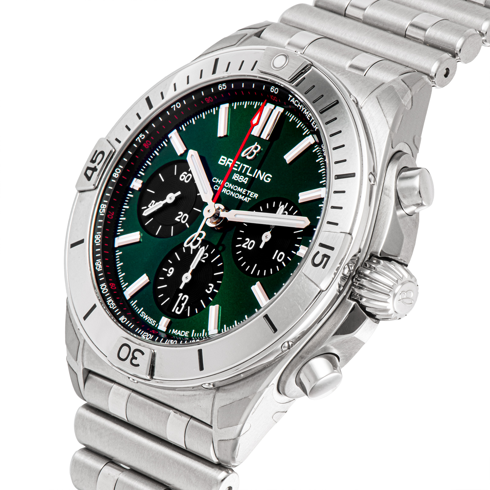 | 商品説明 | ☆ブライトリングのフラッグシップ『クロノマット B01 42』。 自社製キャリバー01が刻む正確なリズムと、約70時間のロングパワーリザーブは、多忙な日常を支える最高のパートナーです。 特筆すべきは、吸い付くような装着感の『ルーローブレスレット』。 200m防水というタフなスペックに都会的なグリーンの文字盤で、ビジネスから週末のレジャーまで、これ一本で完璧に完結させます。 |