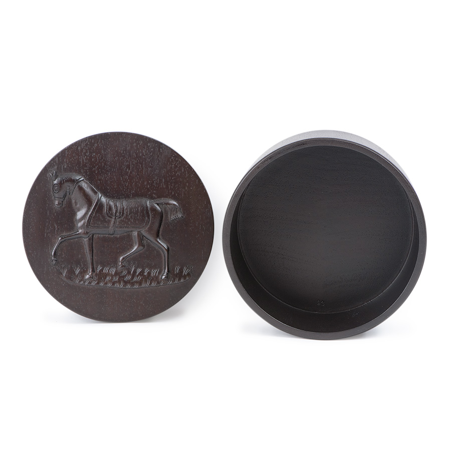 | 商品説明 | ☆エルメスより気品高いツイリーボックスのご紹介です。 蓋に1頭の馬が立体的にデザインされている円形ボックスはダークブラウンのマホガニー無垢材。 お気に入りのツイリーや大切な小物を収納するのにピッタリの高級感漂うボックスです。 ※蓋裏側にキズの箇所がございます。 その他は目立つ傷などもなく綺麗な状態です。 There are some scratches on the back side of the lid. |