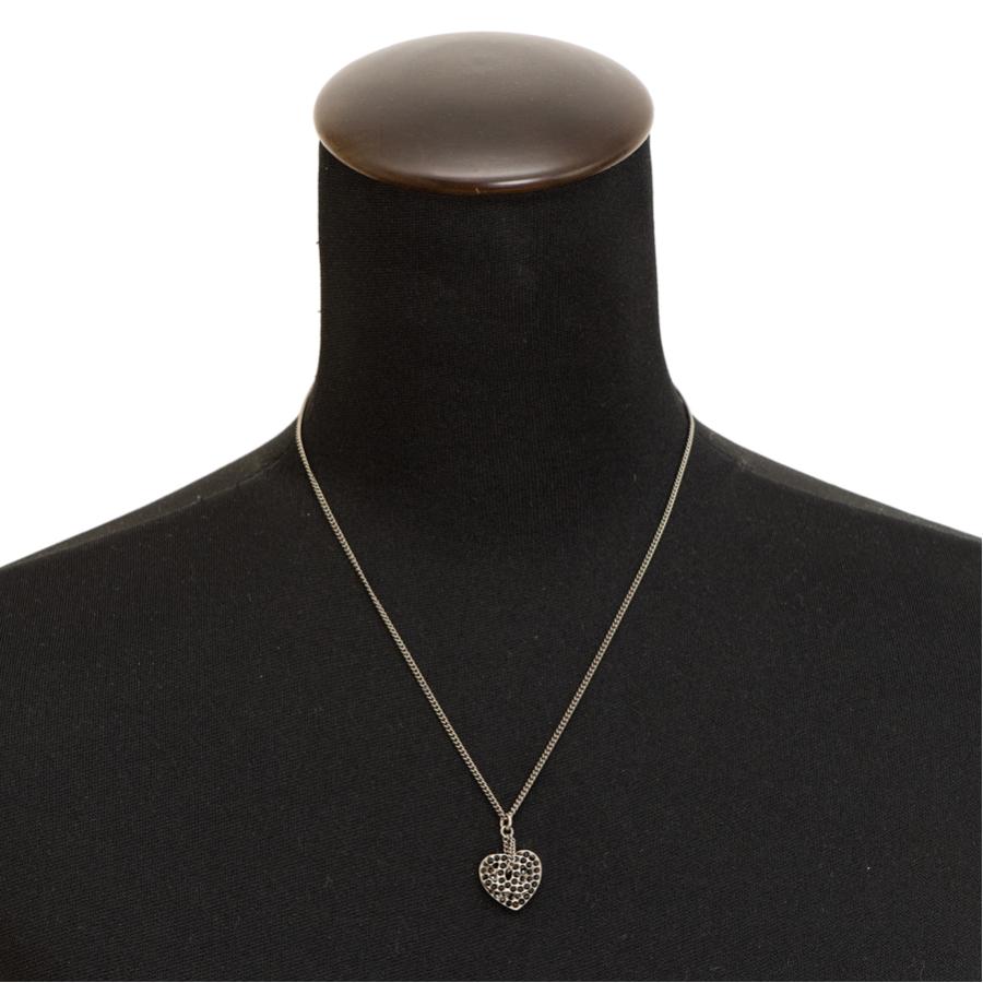 | 商品説明 | ☆ブラックストーン入りのココマークとハートが重なるデザインのネックレスです。 どんなファッションにも合わせやすく、胸元のアクセントにオススメです! ※金属部分に薄い使用傷はありますが、目立つ傷等はなく綺麗な状態です。 |