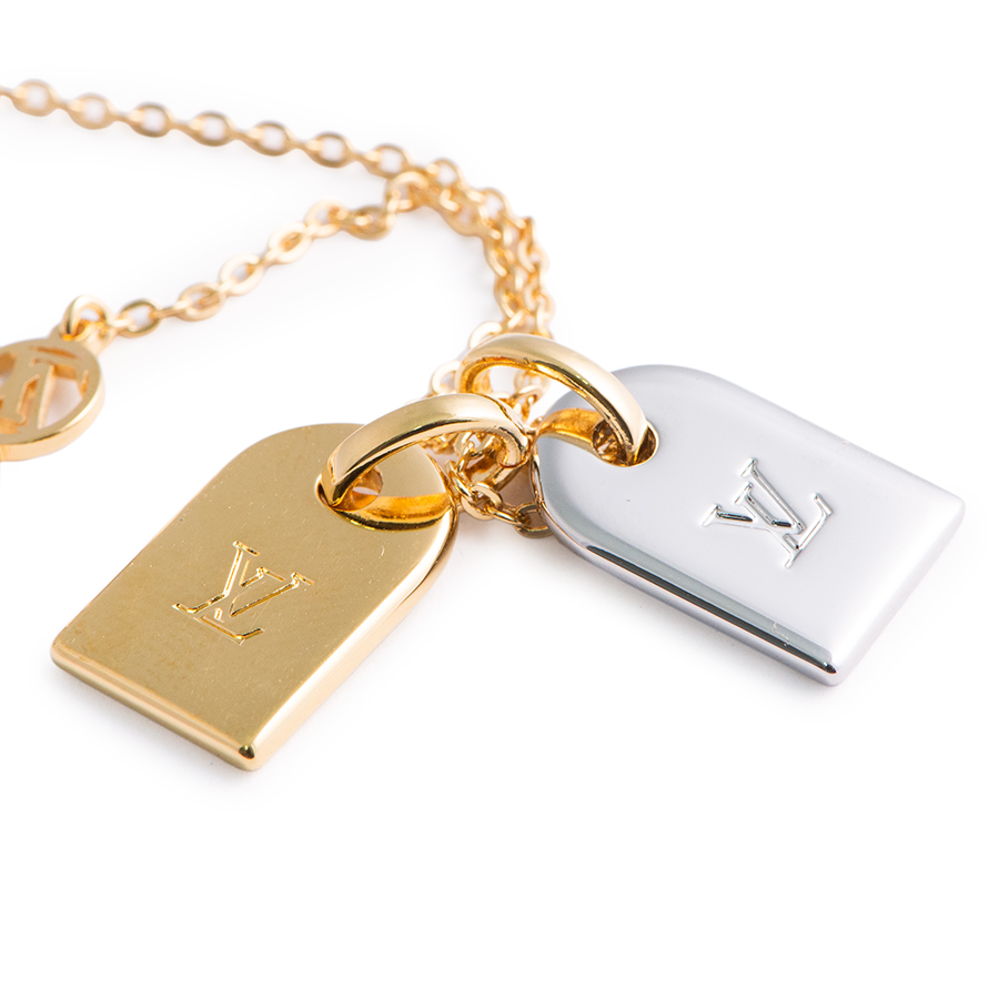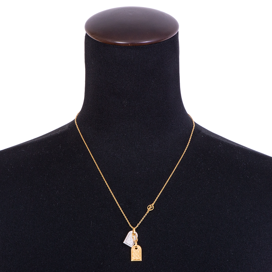 | 商品説明 | ☆2つのミニチュアネームタグ付きのネックレス「ネックレス・ナノグラム」です。 ゴールド&シルバーカラー仕上げの組み合わせが際立つデザイン。 しなやかなチェーンは、「LVサークル」の装飾が施されたクラスプ開閉式です。 ※薄い使用傷はありますが、着用時に目立つ程ではなくキレイな状態です。 |