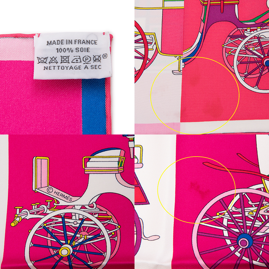 | 商品説明 | ☆二つに切り分けられ組み合わされている馬車が並んだエルメスらしいデザインのカレ「精巧な馬車」。 スカーフを折りたたんで正しい半分をつなぎあわせれば、本来の一台の姿が出現する遊び心あふれるデザインです。 ※薄いシミの箇所がございます。 |