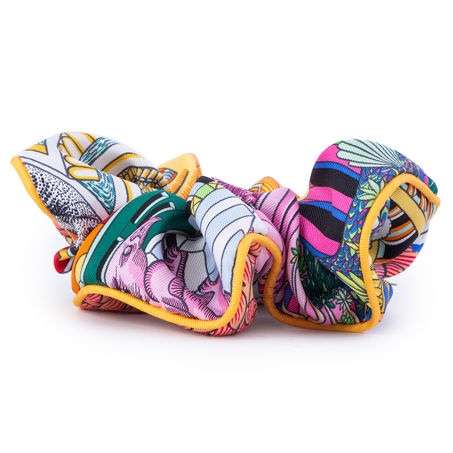| 商品説明 | ☆エルメスのスカーフからつくられた希少で贅沢なシュシュ。 ランダムに選んでカットされたカレのパッチワークは、1点1点異なる仕上がりのデザインです。 イエローのパイピング仕上げが施されたシュシュは、簡単にまとめた髪にさっとつけるだけで洗練されたお洒落を演出できる嬉しいアイテム。 他にもバッグチャームとして、また手首につけてブレス代わりにと、デイリーにエルメスを楽しむのにピッタリのアイテムです。 プレゼントにも最適です。 |