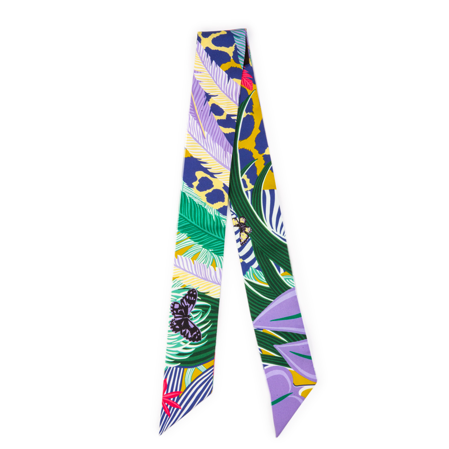 | 商品説明 | ☆アリス・シャーリーによるデザインの2018秋冬コレクション「ジャガーケツァール」です。 ケツァールとは中南米に生息する熱帯の鳥でその長い尾羽根と蝶々がトロピカルに描かれ、ベースには眠るジャガーがあしらわれた色鮮やかなデザインです。 バッグに結んだり、首や手首に巻いたり、ヘアアレンジに使ったりと自由自在にお使いいただけます。 1つ加えるだけでオシャレ上級者に早変わりする万能アイテムです♪ ※目立つ汚れ等もなくキレイな状態です。 |