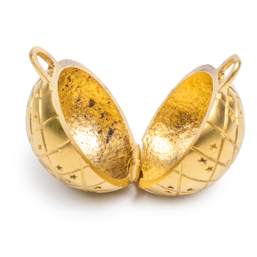 | 商品説明 | ☆ホロスコープをあしらったペンダントネックレストップです。 ころんとしたドーム型のフォルムで、艶消しのゴールドが胸元を存在感ある大人っぽい印象に仕上げてくれます。 お手持ちのストラップを通してのペンダント以外にもチャーム等、様々な用途でお楽しみ頂けます。 開閉式なのでピルケース等としてもご使用頂けます。 ※内側に斑状の変色汚れ部分がございます。 |