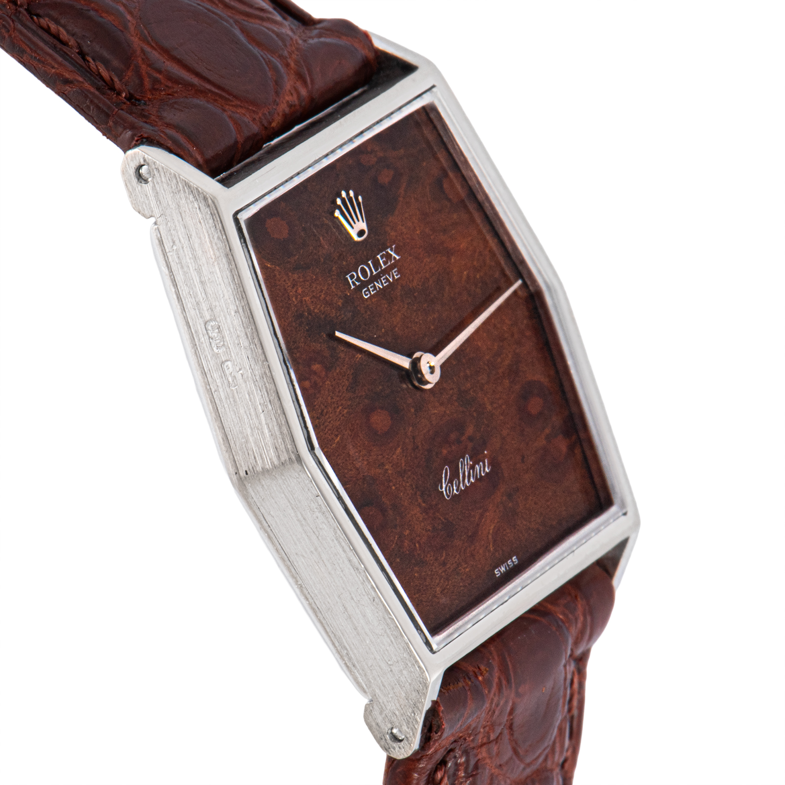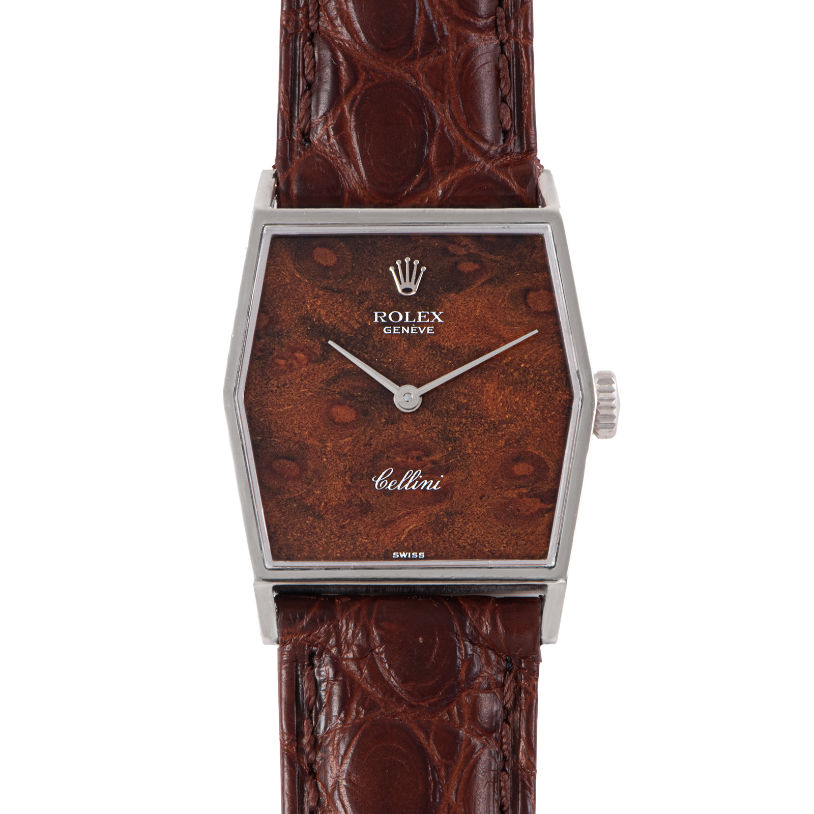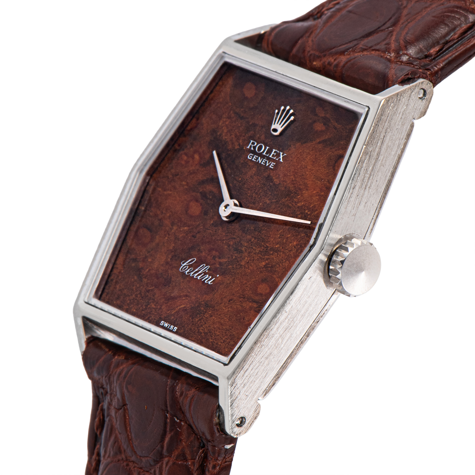 | 商品説明 | ☆Ref.4121は、ヘキサゴンケースが特徴のクラシカルなモデルで、通常のスクエアケースとは違った雰囲気を持つ一本です。 文字盤にウォルナットが使われていて、落ち着いた色合いで同じ模様のモデルがない特別な存在になっています。 華美な装飾を抑えたミニマルなデザインは、まさにチェリーニらしい美意識。 スーツスタイルからカジュアルまで、静かに存在感を放つヴィンテージドレスウォッチです。 |