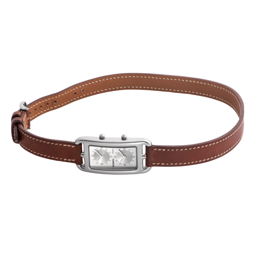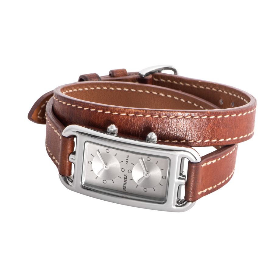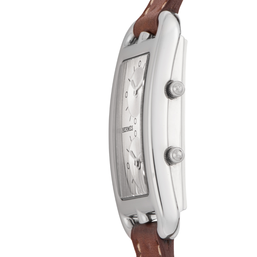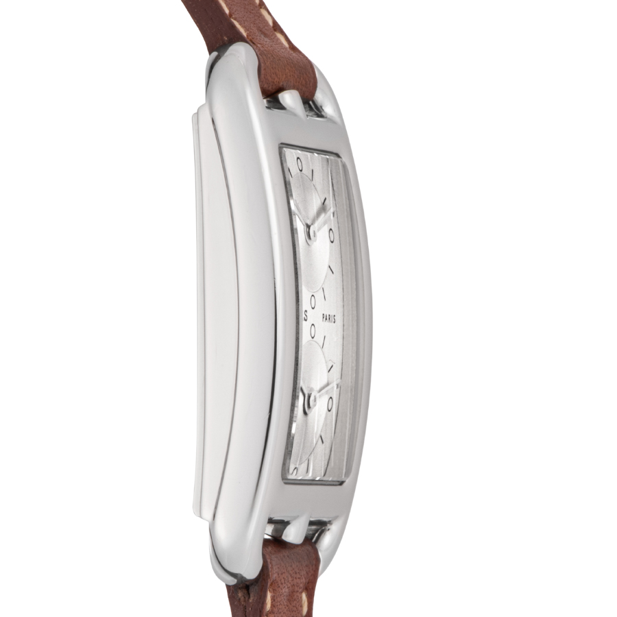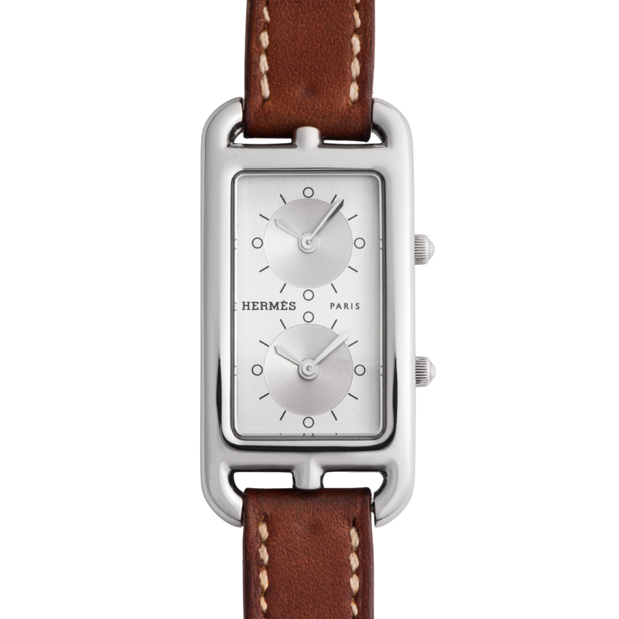 | 商品説明 | ☆エルメスの名作ジュエリー「シェーヌ・ダンクル」にインスパイアされた、アンリ・ドリニーによるデザインが光るケープコッド。長方形に正方形を重ねた独特のフォルムに、柔らかな曲線が融合し、気品とフェミニティを感じさせる一本です。 このモデルは、縦長ケースに2タイムゾーン表示を備えた「ドゥゾーン」仕様。2つのムーブメントが独立して時を刻み、旅先でもスタイリッシュに時を操ることができます。シルバーダイヤルにギョーシェ彫りが施されたインダイアルが美しい陰影を生み出し、知性と上品さを併せ持つ洗練された表情に仕上がっています。 |