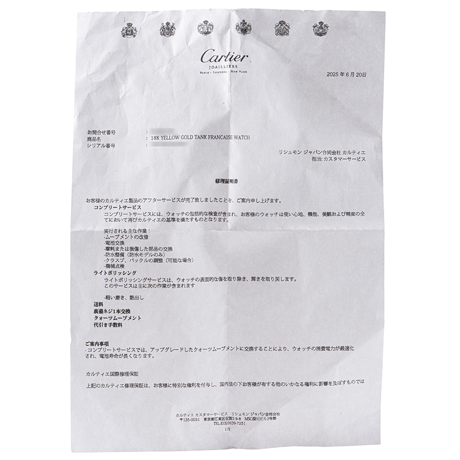 | 商品説明 | ☆カルティエの時計で一番人気のタンクフランセーズからイエローゴールド無垢、ケースサイドにダイヤをセッティングした豪華なモデルです。 2025年6月にメーカーコンプリートサービス済み |