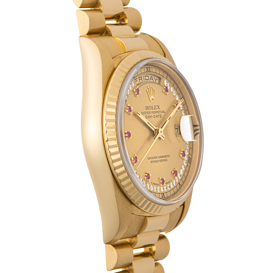| 商品説明 | ☆K18YG無垢モデルでずっしりとした重量感のある、ロレックス最高峰のドレス系モデルです。 シャンパンダイアルに10Pのルビー、文字盤の外周に沿ってメレダイヤをセッティングした華やかなモデルです。 |