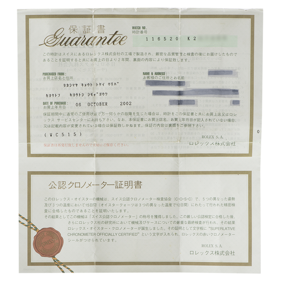 ロレックス デイトナ 116520 K番