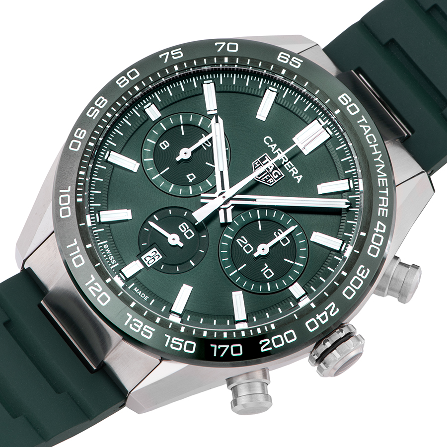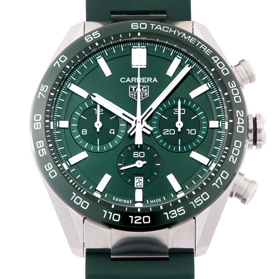 | 商品説明 | ☆CBN2A1N.FT6238は、深みのあるグリーンダイヤルが目を引くカレラ クロノグラフ。 サンレイ仕上げのグリーンダイヤルが光の角度で美しく表情を変え、洗練されたスポーティエレガンスを演出します。力強いステンレスチールケースにラバーストラップを組み合わせ、快適な装着感と高い実用性を両立。 自社製ムーブメント ホイヤー02を搭載し、80時間のパワーリザーブやシースルーバッグも魅力の一本です。 |