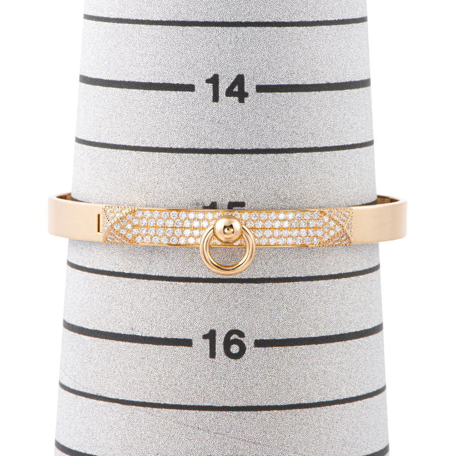 | サイズ | SHサイズ 腕回り:約15 cm 内周:15.8 cm 幅:0.6 cm ダイヤモンド130個 総カラット数:0.91 ct 重さ:約23.5g |