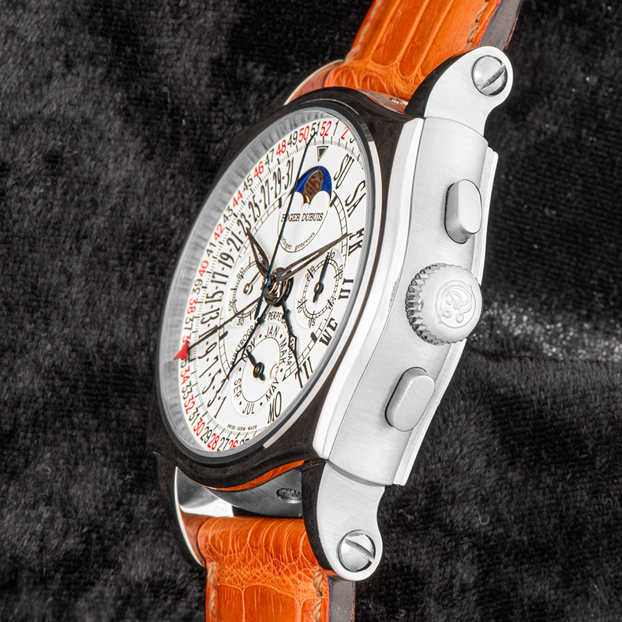 今回紹介する『ロジェ・デュブイ シンパシー・バイレトログラード 52週 永久カレンダー クロノグラフ(Sympathie Bi Retrograde Perpetual Calendar Chronograph)』は、2000年前後に発表された、ブランド初期のフラッグシップとも言えるハイコンプリケーションモデルである。