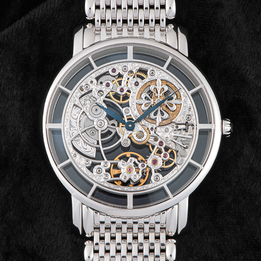 搭載されるのは、超薄型自動巻きスケルトンCal.240 SQUであり、その精緻さと芸術性はクラフツマンシップの結晶といえる。