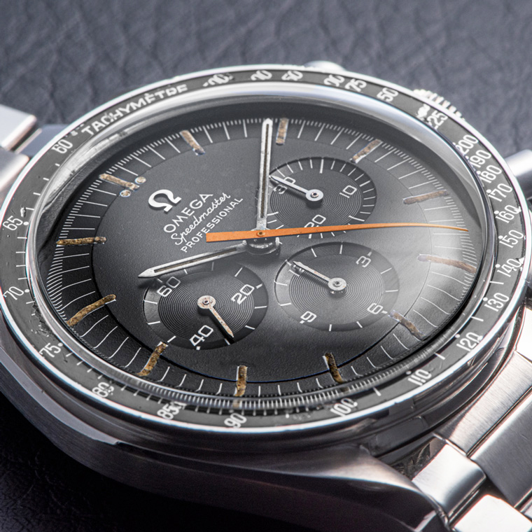 ヴィンテージに該当する「スピードマスター」の中でも人気が集中しているのは、時計師アルバート・ピゲがレマニア社に在籍していた頃に開発した手巻きムーブメントCal.321を搭載するRef.ST145.012-67SPまでのモデルだと思われる。