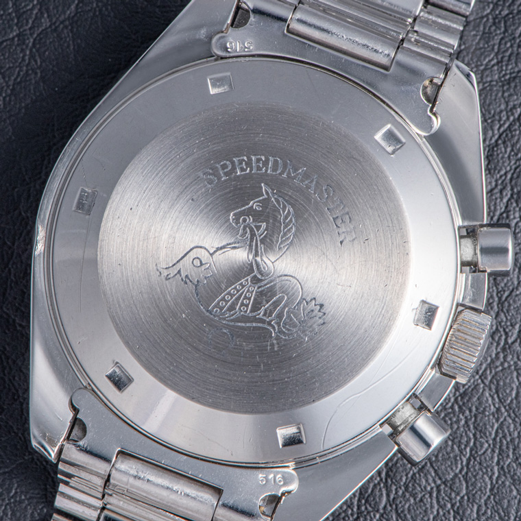 ケースバックには、オメガのアイコンである「シーホース」のマークが刻印されている。